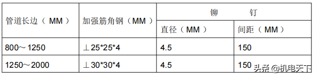 或单边平面积大于1.2m2,沿管道中心按下表要求设加强筋加强: