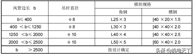 a.支、吊架的形式和规格宜按本标准或有关标准图集与规范选用,直径大于2m或边长大于2.5m的超宽、超重特殊风管的支、吊架应按设计规定。