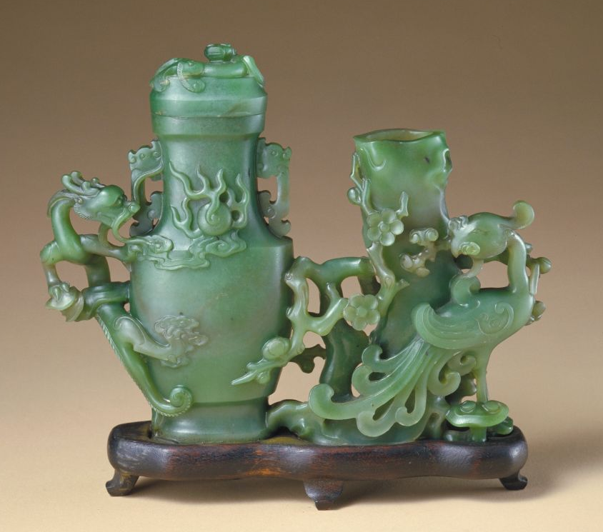 清青玉龙首鳌鱼花插(故宫博物院藏)