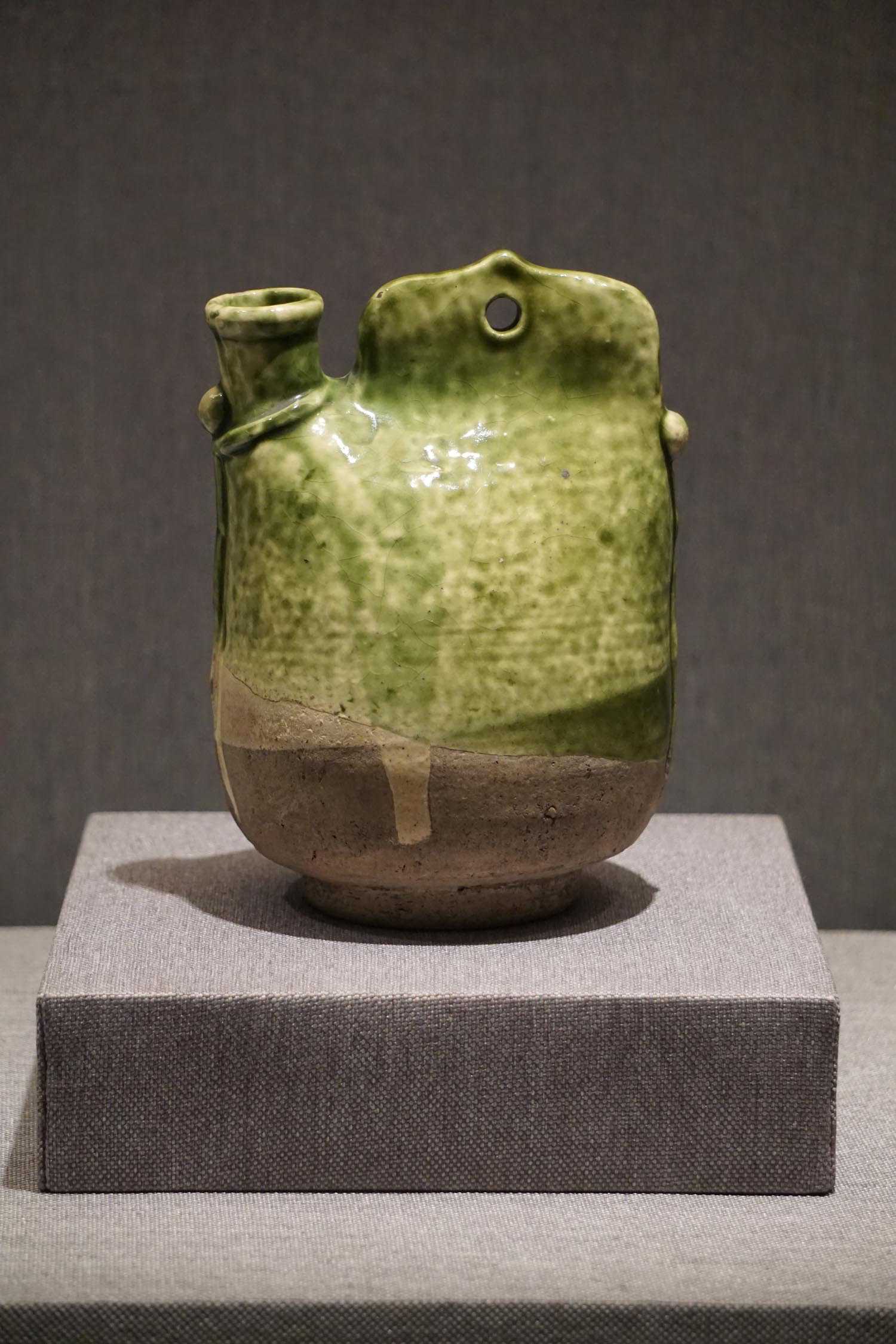 白釉绿彩纽带装饰折梁鸡冠壶辽辽宁喀左大三家子出土