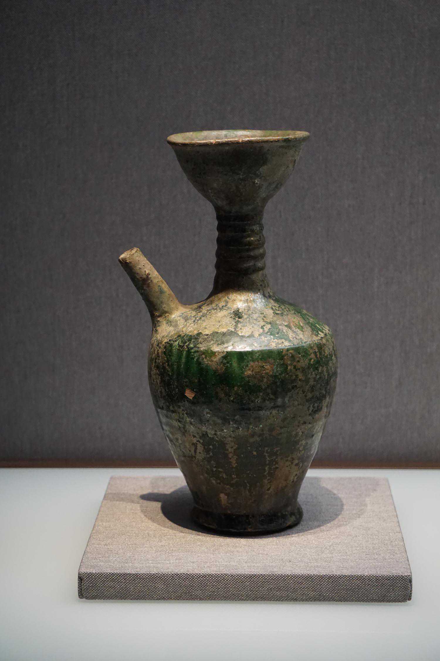 茶末绿釉单孔鸡冠壶辽辽宁建平叶柏寿出土