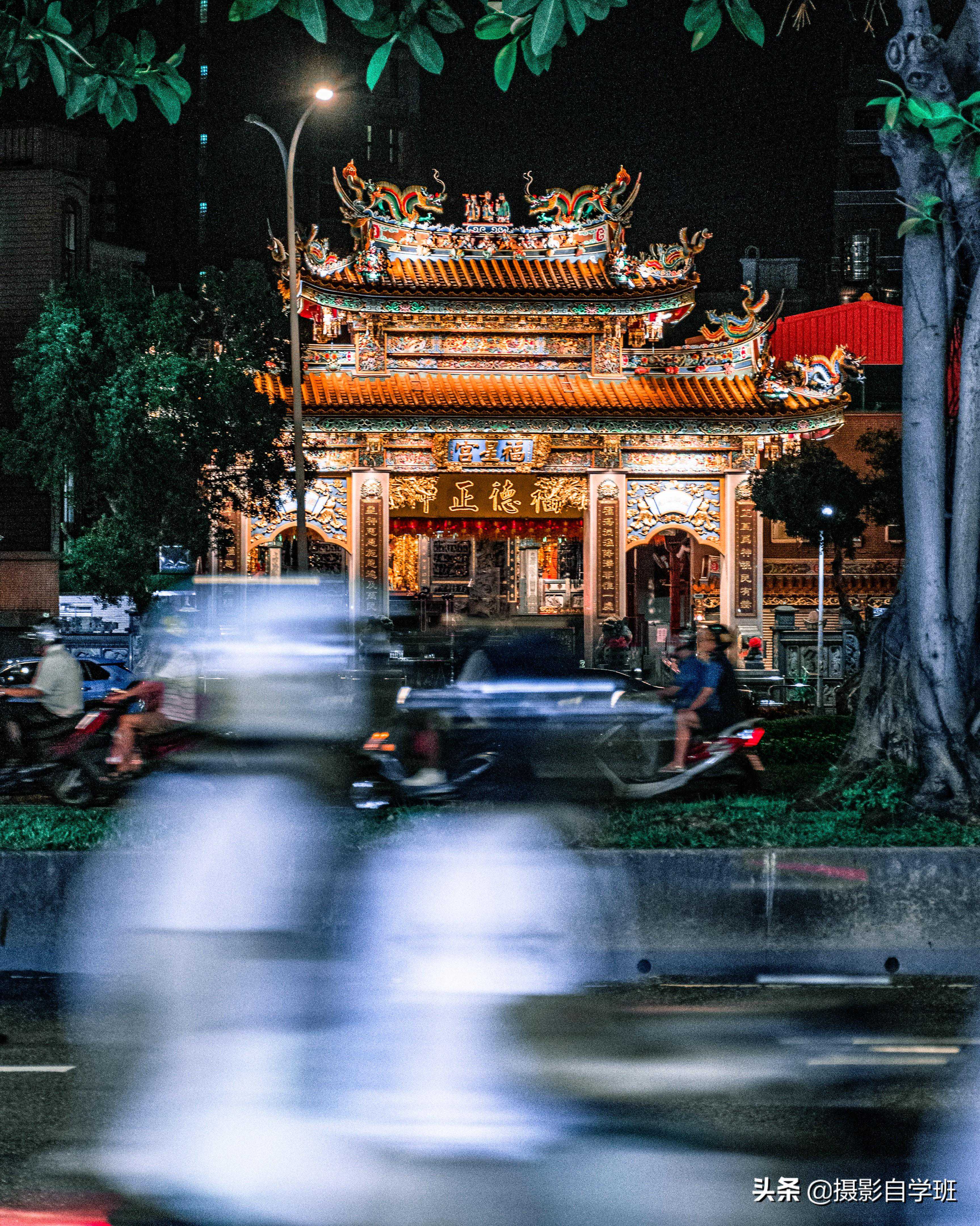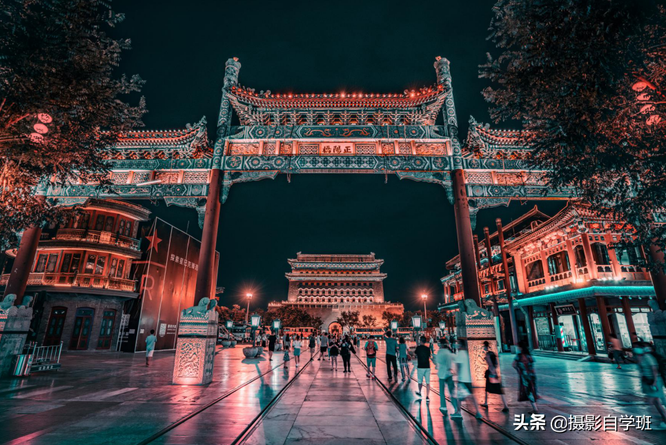 (1)当建筑暗时,我们要等待古建筑上的灯亮起来,有了光,古建筑才会有亮,剩下就是怎么拍的问题了。
