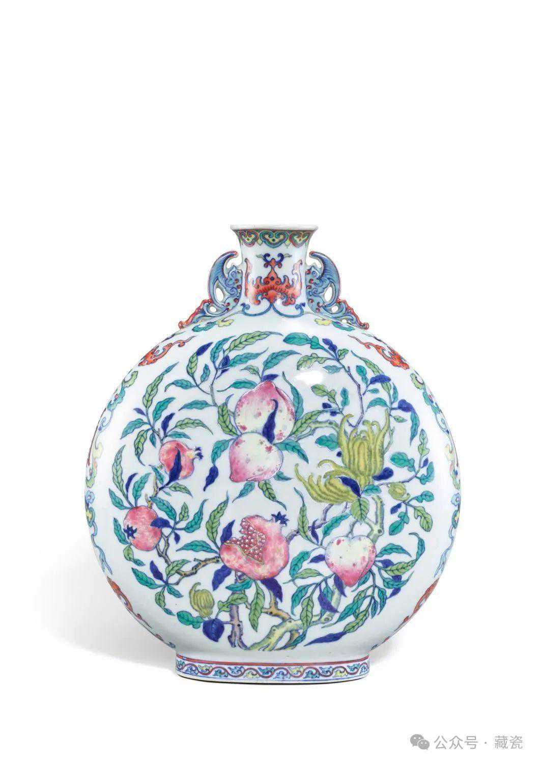 Lot3703清乾隆斗彩加粉彩福寿三多双蝠耳扁壶