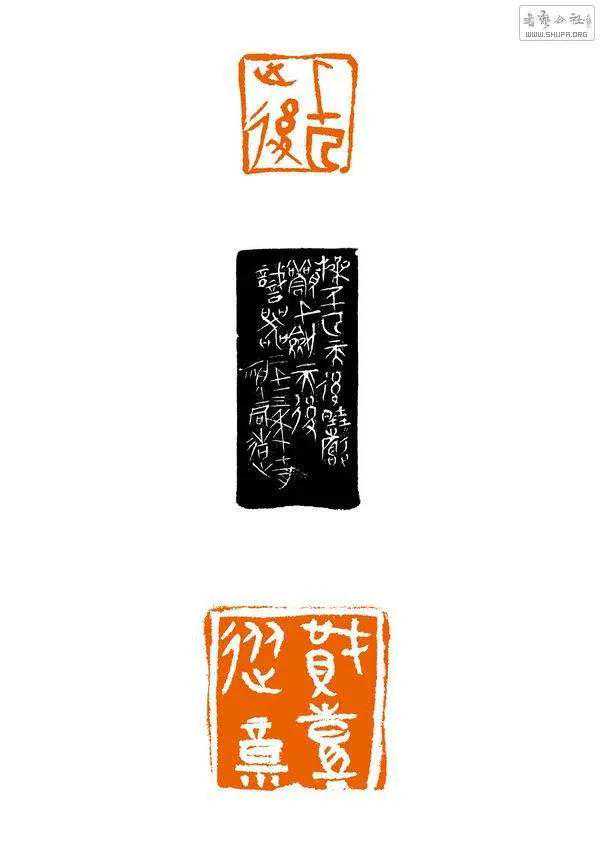 张铭:当一种艺术形式被趋之的时候,带来的是千印一面的尴尬和创作手段的单一,古玺创作同样面临着突破的可能和必要,相对于汉印,古玺文字的匮乏必然导致创作难度的增加,从古玺以外的文字中找突破口,成为了唯一。通过对其他文字的“古玺化”处理来丰富形式表现的内涵,无论从艺术创作的层面还是从篆刻发展的角度看,都是值得激赏的。