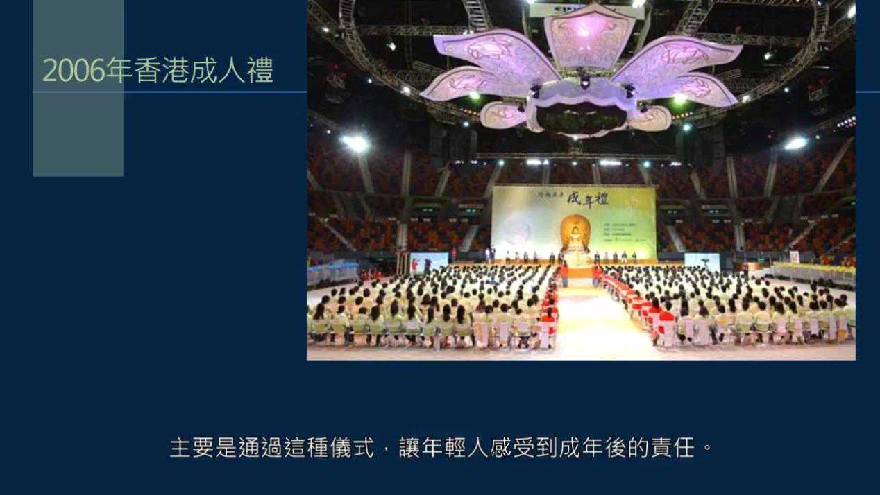 成年礼是一个庄重的仪式。项目步骤很复杂,各位可以自己去查一下。这里是香港2006年举办的成年礼照片。