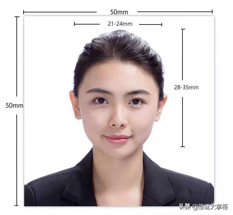 2.相片外沿大小必须为35毫米×48毫米,头部大小(下巴到头顶)在31毫米-36毫米;