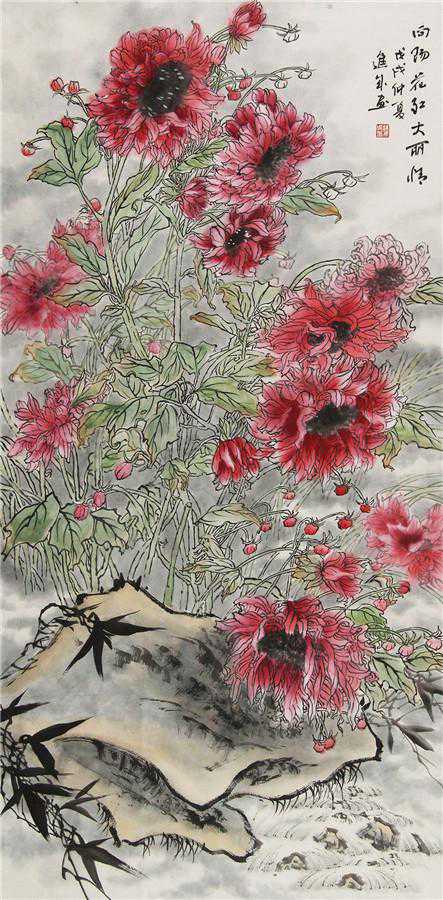 艺术鉴语:雍进成先生的花鸟画在构思、运笔、立意上都不袭前人,有长足的突破。泼墨浓淡、疏密相宜,有一种情调在纸上荡漾,像抒情散文,淡墨中跳出一点红花蕾,有时又黄得灼眼,在万绿丛中听到一声鸟鸣,强烈地吸引着观众,不但给人留下目睹为快的视觉感,而且达到了耳闻为乐的艺术佳境。