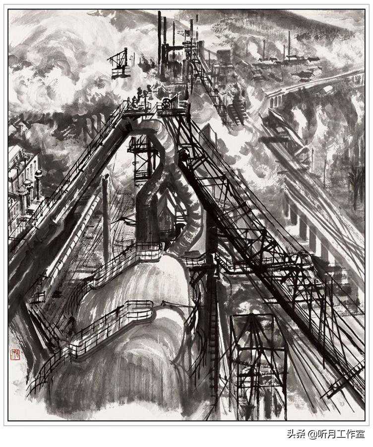 中国当代著名国画家张仃《石景山钢铁厂》赏析
