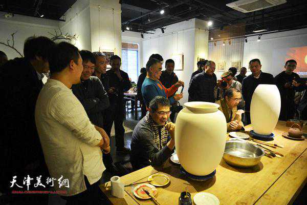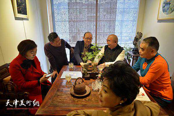 天津美术学院教授刘文生、喻建十、杨沛璋、陈福春、李旺,天津市美术家协会副主席、天津市政协书画艺术研究会会长、南开大学教授尹沧海,天津美术馆馆长马驰,天津市美术家协会艺术理论委员会副秘书长、天津美术学院教授路洪明,天津美术学院工艺美术系主任李明谦,书画家白鹏、段为民、闫勇、白光,作家黎家明,荣宝斋天津分店总经理王彬,北京协和医院教授冷金花,瀚琮艺术空间李清海,文化推广人林德谦等出席了展览开幕活动。开幕仪式由天津市美术家协会副主席、天津市政协书画艺术研究会会长、南开大学教授尹沧海主持。