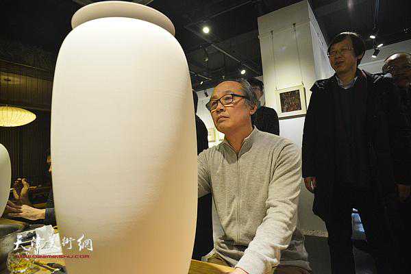 尹沧海与来宾在展览现场。