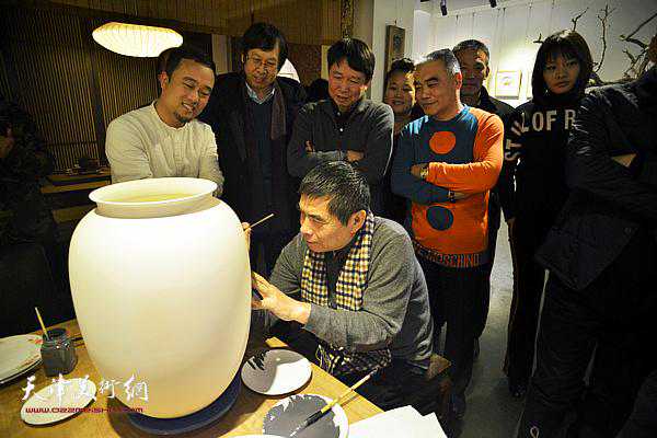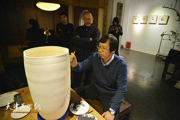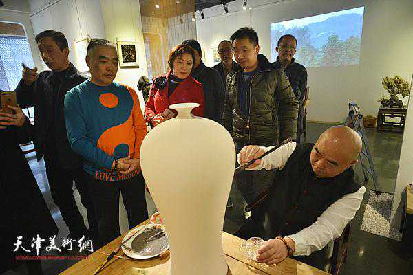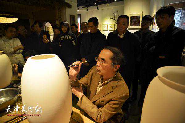 尹沧海在现场画瓷。