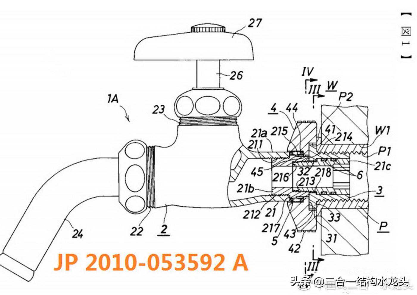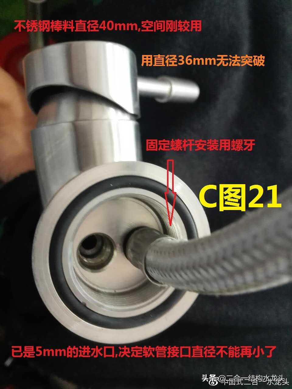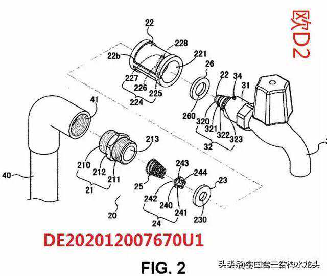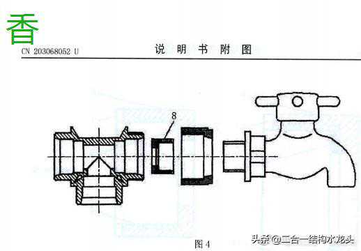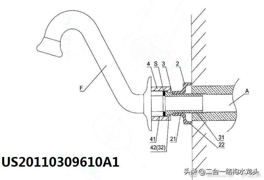 上面专利共同特点①繁锁式②外露式:③分离式(指管接头与水龙头主体被隔开)注一个专利内多数方案,不过变化不大.看下面中国式二合一结构.