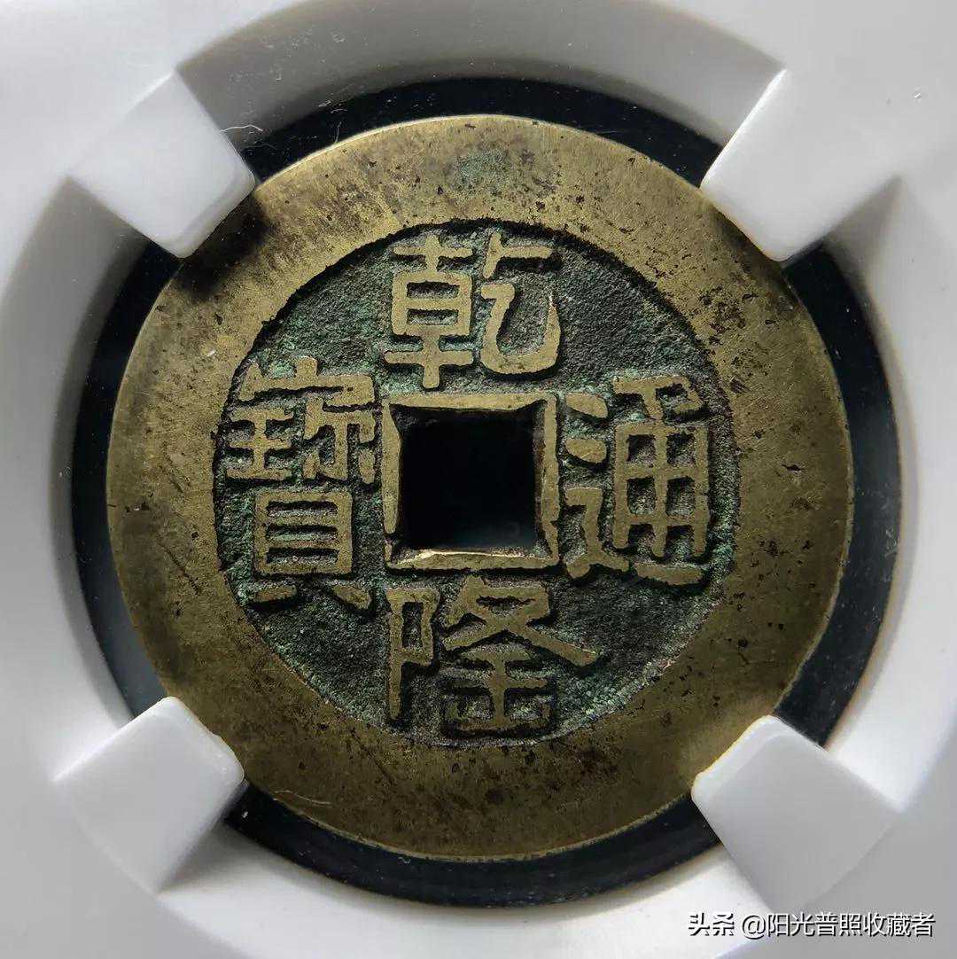 下为85分乾隆通宝山底隆特大样评级币,尺寸:28.6×1.6。带镜面铜光。成交价格5440元。