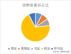 种苗造假的主要特点是植物苗高于动物苗动物苗占整体客诉的14.44%,鸭苗售后占比高,植物苗占整体客诉的84.44%,其中葡萄苗占植物苗客诉的28%。