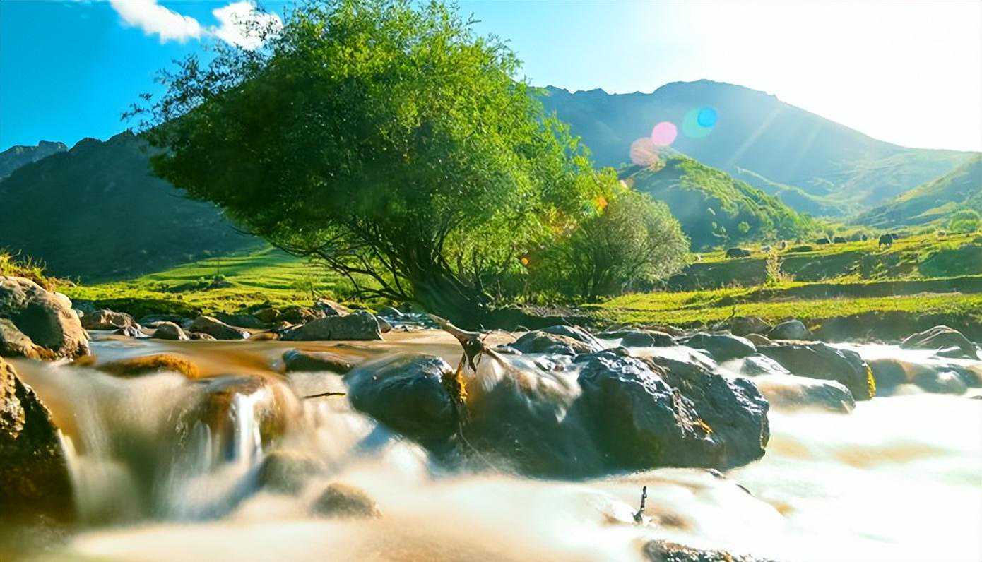 青山绿水草原溪流,避暑野餐好去处,可骑马