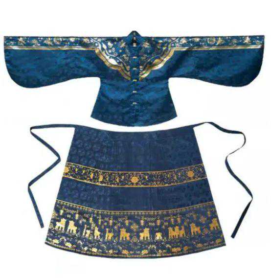 但是百褶马面裙的文物很残缺,从图片上看不出结构,所以许多做百褶马面裙的商家主要是通过报告复原制作。