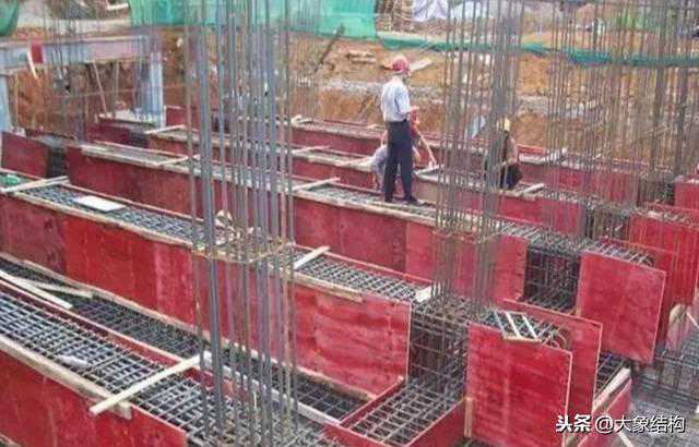 4、当梁板式筏形基础的梁在底板下部时,通常采取梁板同时浇筑混凝土,梁的侧模板式无法拆除的,一般梁侧模采取在垫层上两侧砌半砖代替钢(或木)侧模与垫层形成一个砖壳子模