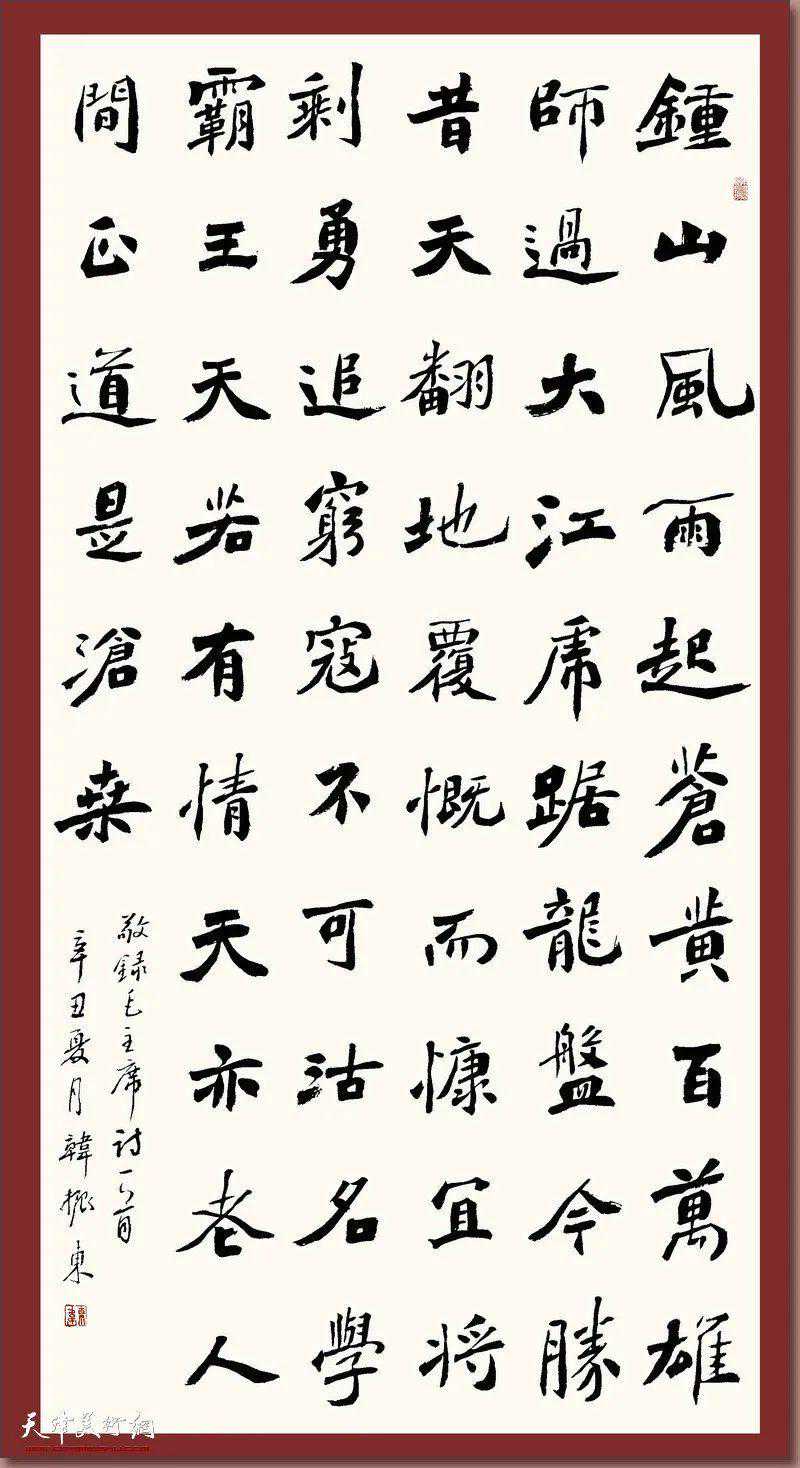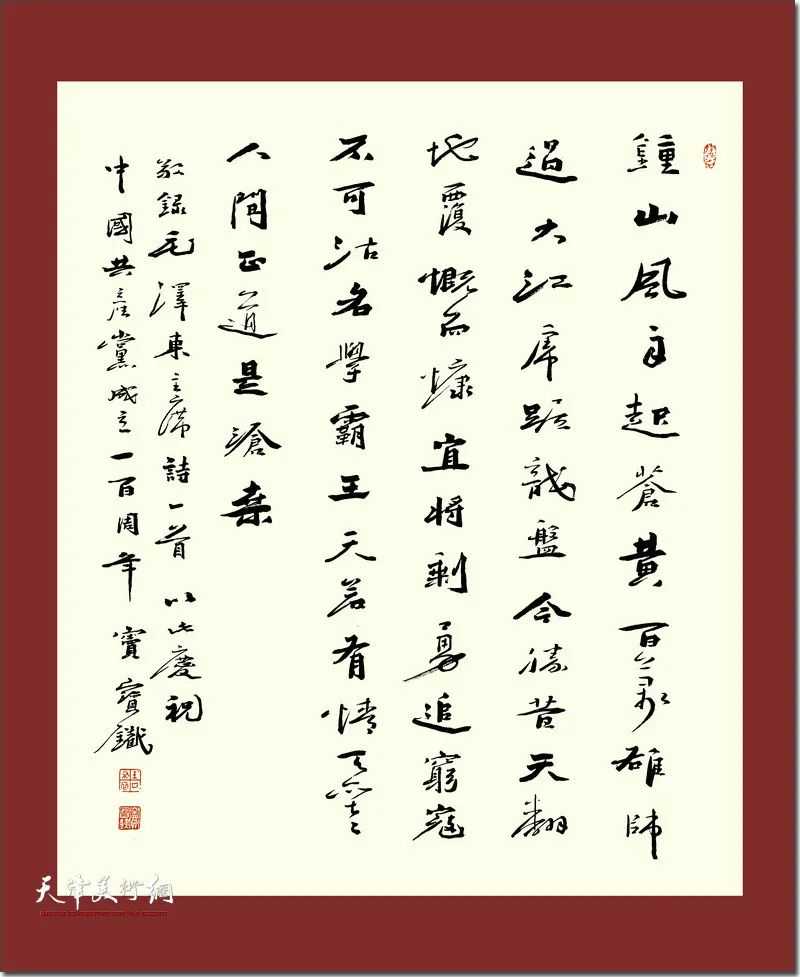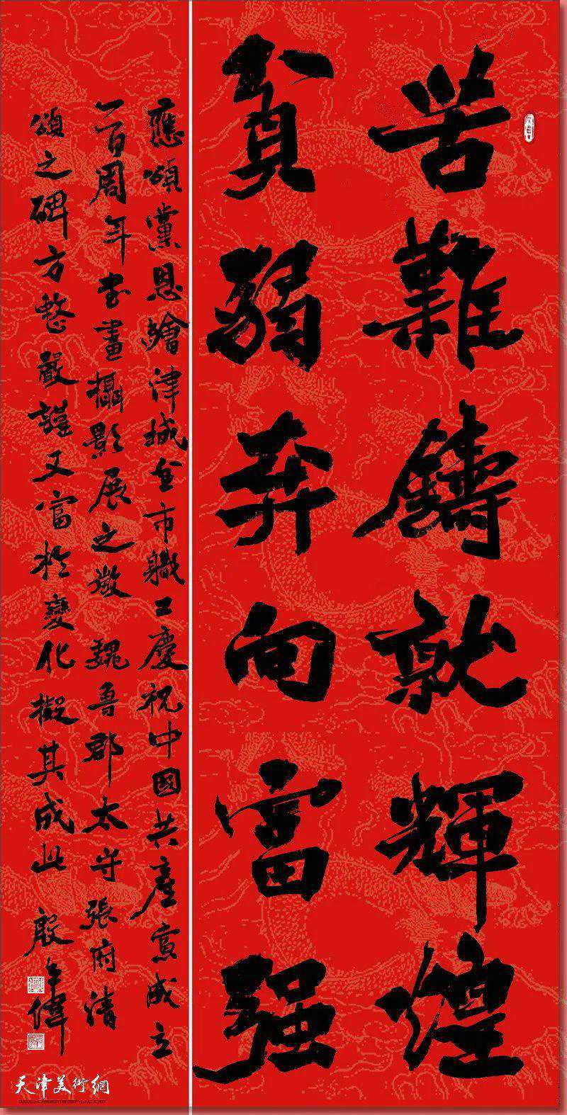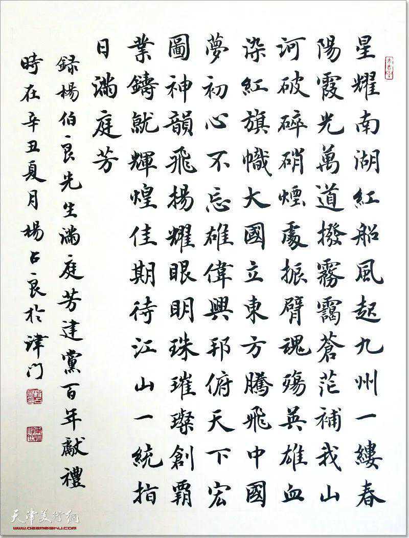 天津市书法家协会楷书委员会主任窦宝铁介绍,作为新时代文艺工作者,我们要有责任和担当通过创作的艺术作品来歌颂祖国,讴歌中国共产党建党百年的伟大历程与成就,并通过展览的形式向中国共产党的百年华诞献礼。