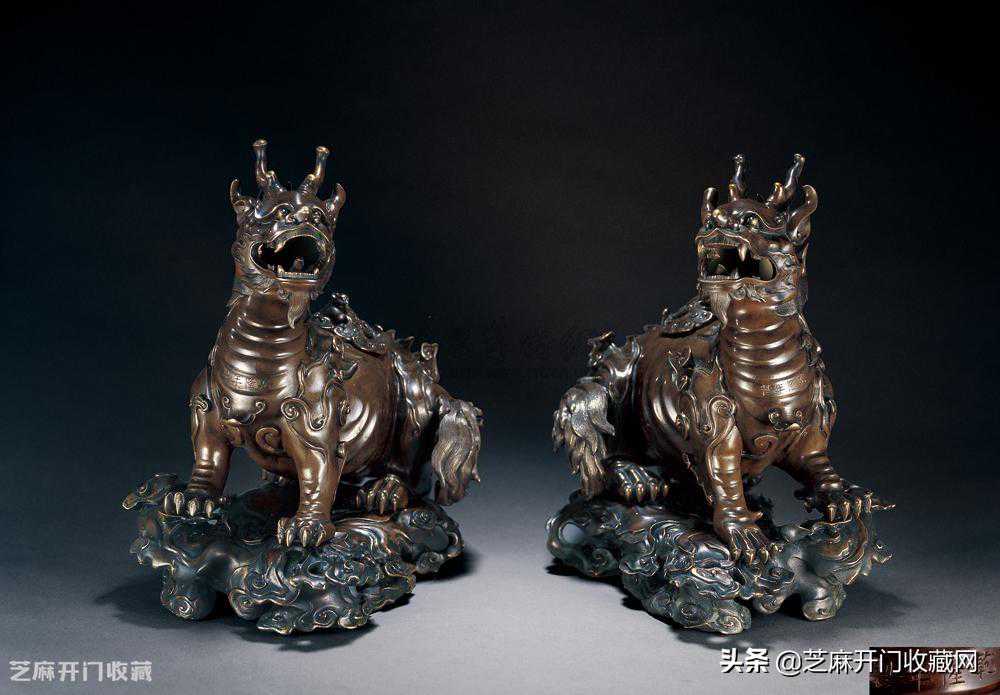 4:清乾隆铜瑞兽香薰(一对),尺寸:高31厘米,估价:RMB2,000,000~3,000,000,成交价:RMB3,248,000