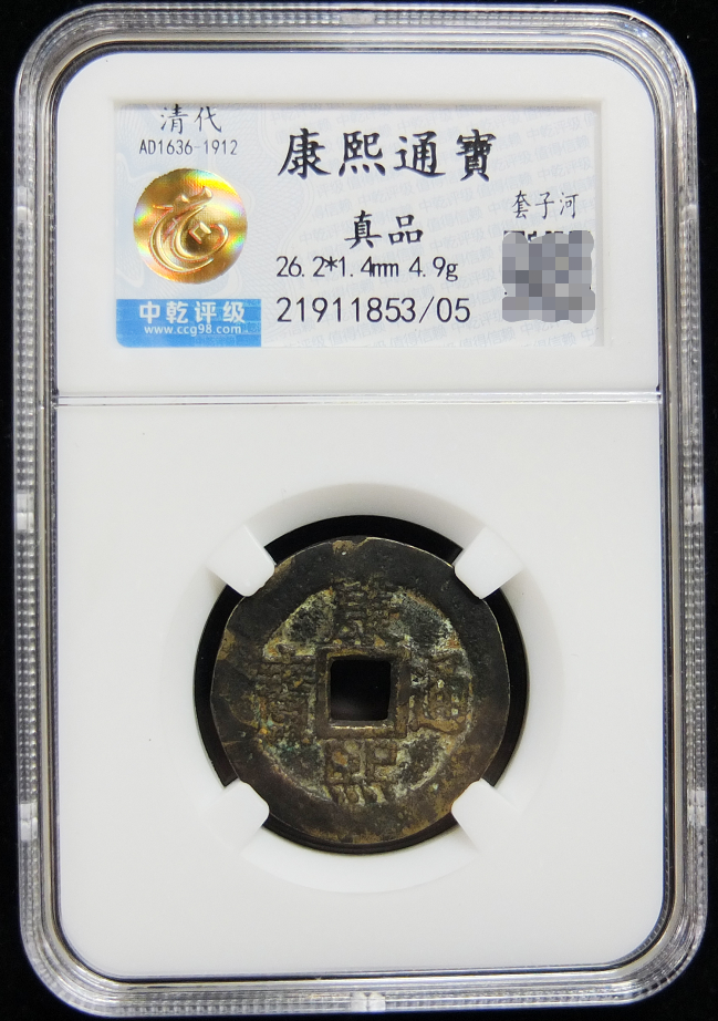 第2号拍品:清代康熙通宝套子钱背河字中干评级