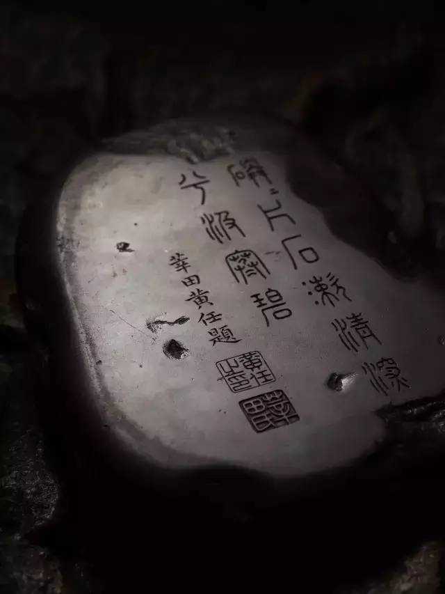 米芾得此砚,拜之为“兄”,亲刻砚铭,即《研山铭》:“五色水,浮昆仑,潭在顶,出黑云,挂龙怪,烁电痕,下震霆,泽厚坤,极变化,阖道门。”