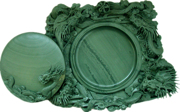 一般比较浅的砚台俗称墨盘,通俗指像是盘子状的较大型砚台。