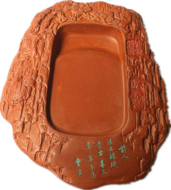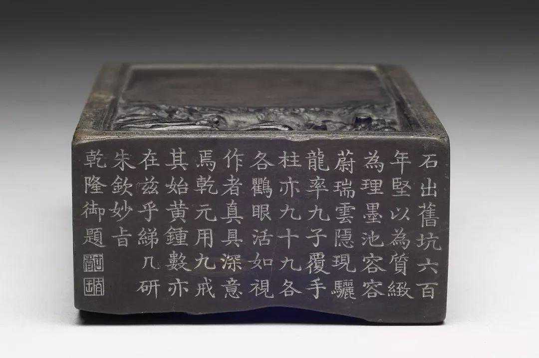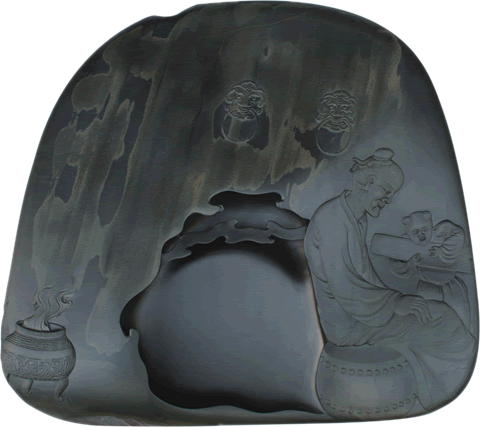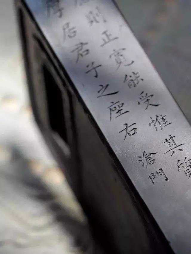 ➤铭:指砚的雕刻者在砚的某个部位题诗或作句,像这样的砚一般能提高其艺术价值。