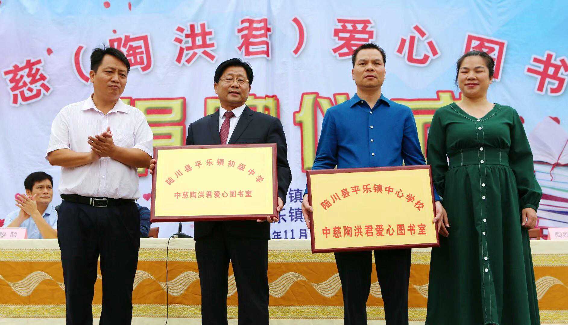 捐赠仪式上,华夏文化艺术委员会会长、著名书画家陶洪君先生联合中华慈善总会大众慈善促进委员会为该县平乐镇初级中学和平乐镇中心学校捐赠了总价值20万人民币的7400册图书。所捐赠图书涉及文学、历史、天文、地理、科技等方方面面,种类多样,内容丰富,能大大满足孩子们增长知识、开拓视野、启迪智慧的读书需求。