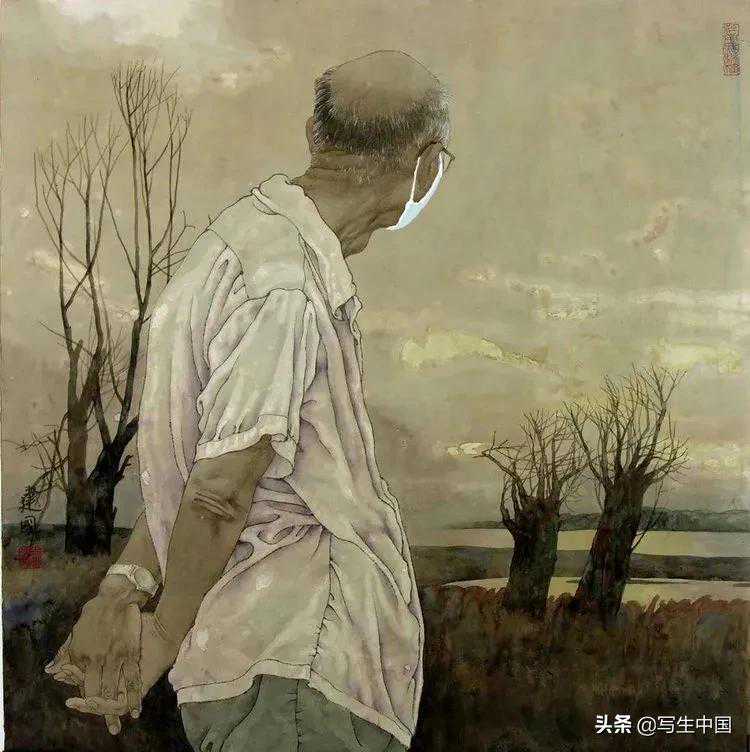 《小门神——你没戴口罩》中国画60x90cm聂鹏
