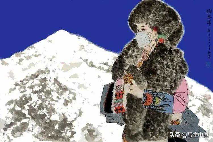 《抗击疫情,大爱无疆》国画四尺整张张海霞
