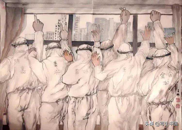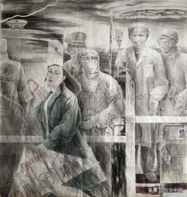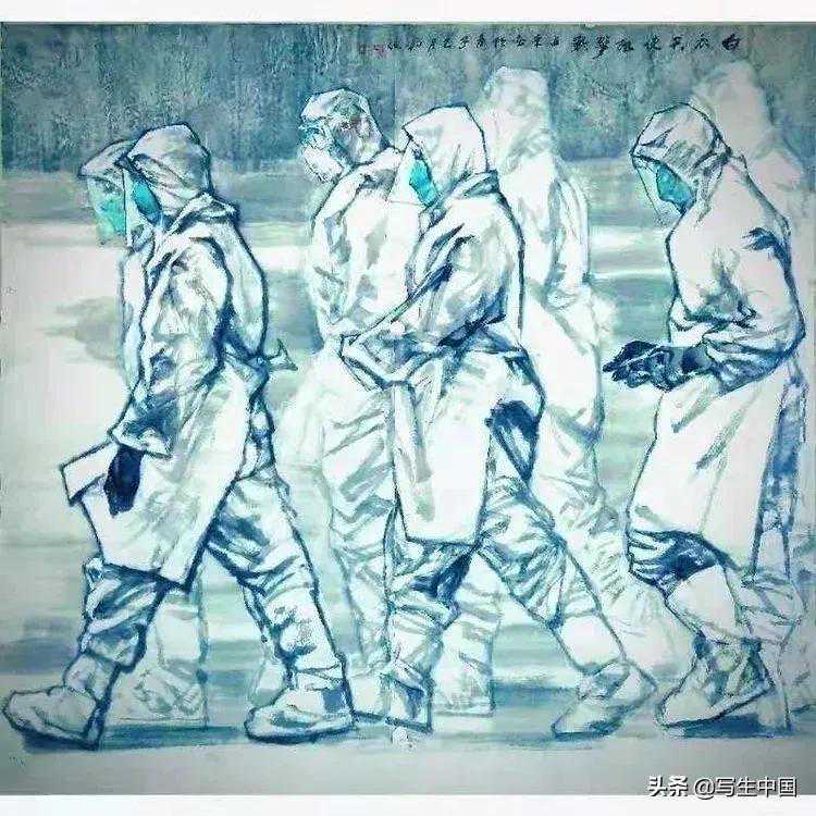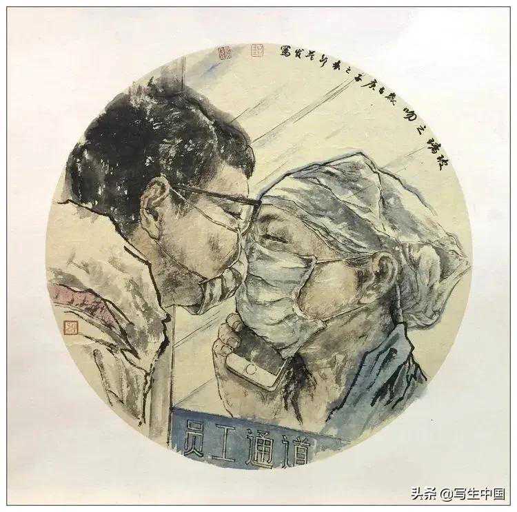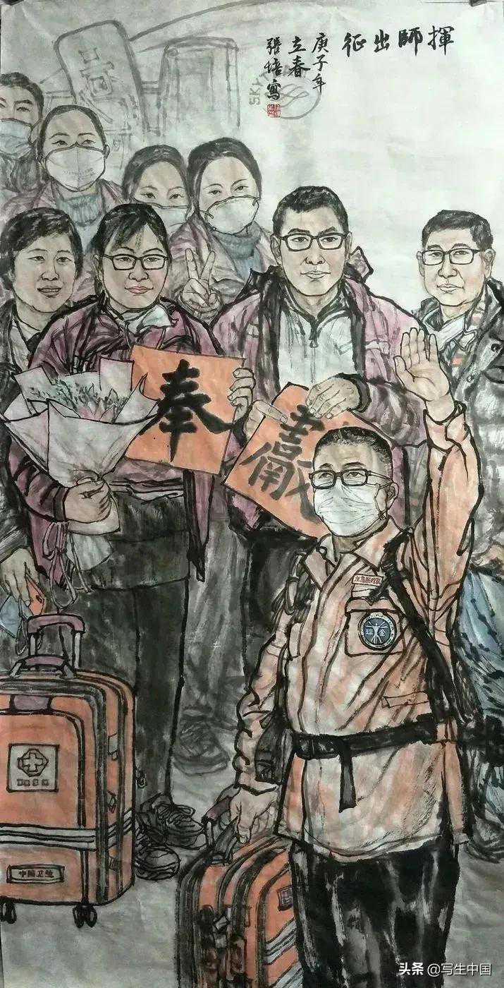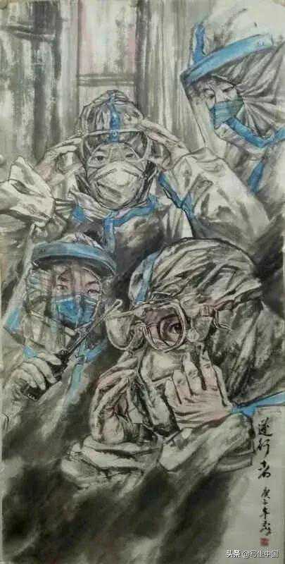 《拿画笔的抗疫战士》中国画蒋洪亮