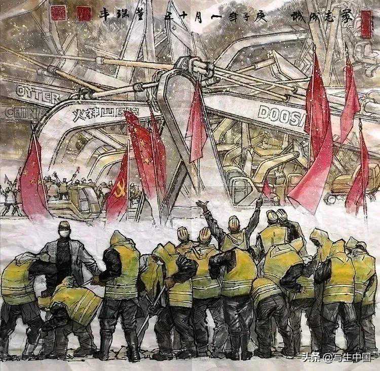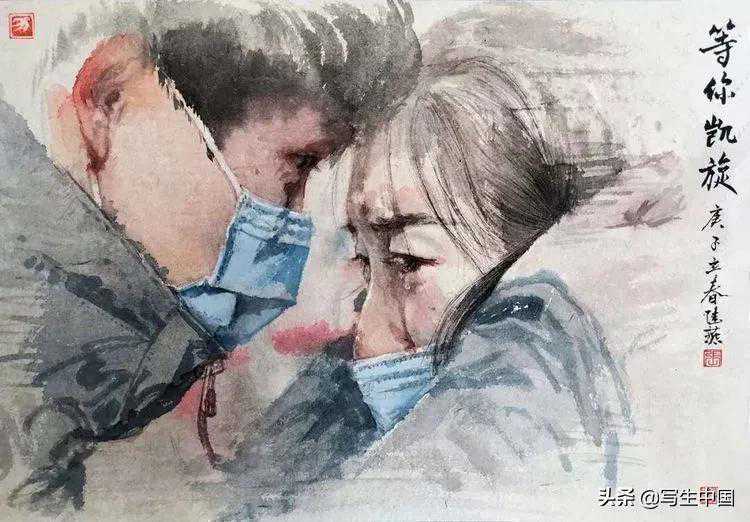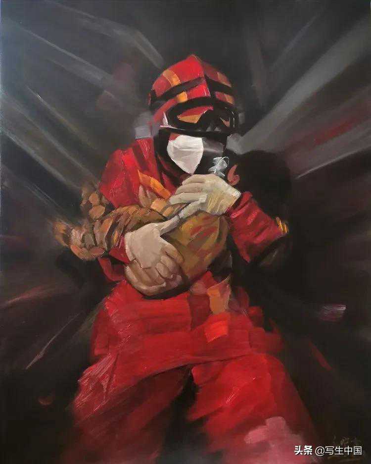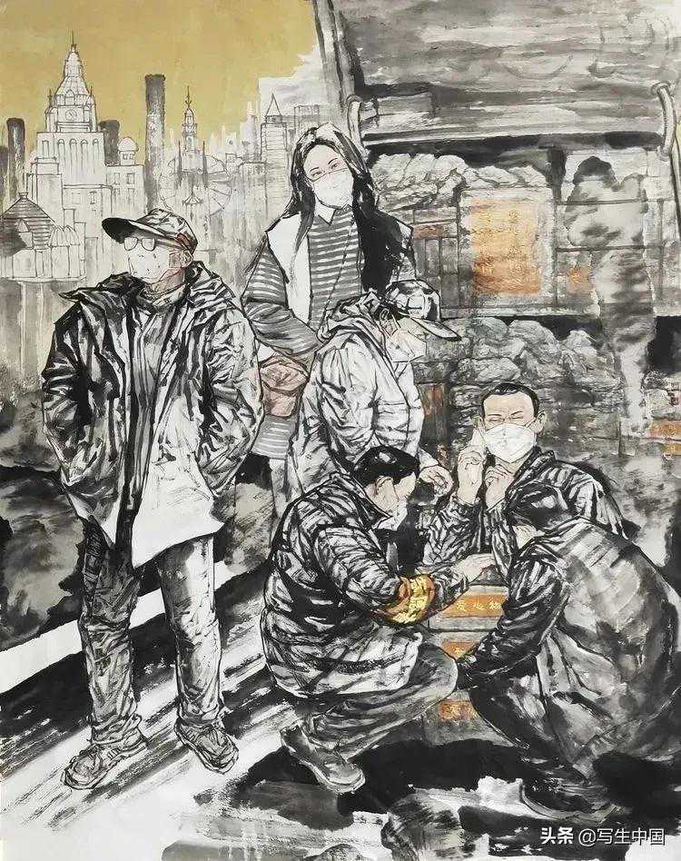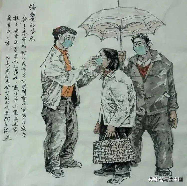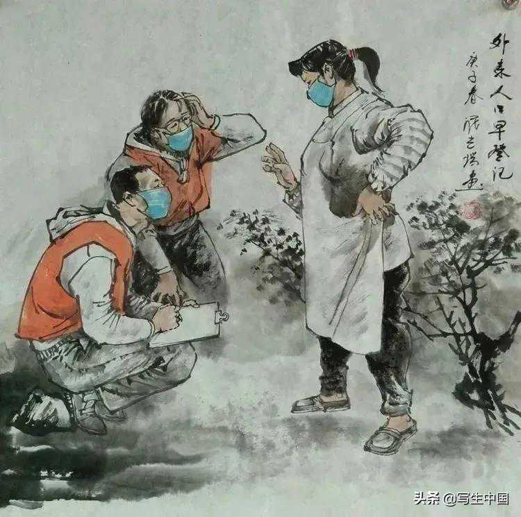 《拿画笔的抗疫战士》中国画蒋洪亮