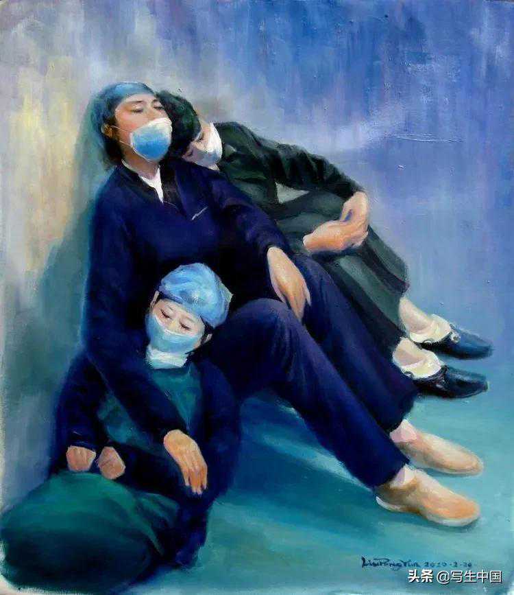 《致敬抗疫一线疲惫的女护士》水彩19x26cm陈沛