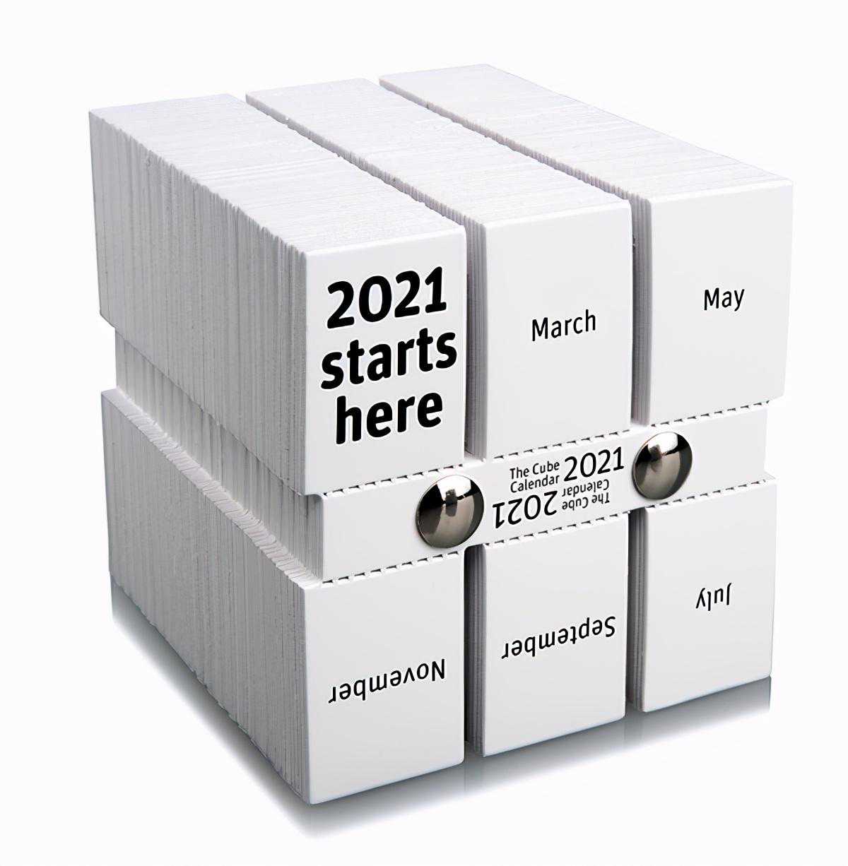 七、外形真有够厉害的1、TheCubeCalar2021TheCubeCalar魔方日历出自荷兰设计师PhilipStroomberg之手。拿到手让人忍不住感叹:“到底怎么玩?”日历分上下两层,每层三列,每列两个月,每天一页,背面为空白,每周的周初会有一片单独的警句名言,其余页则留给你自由发挥。