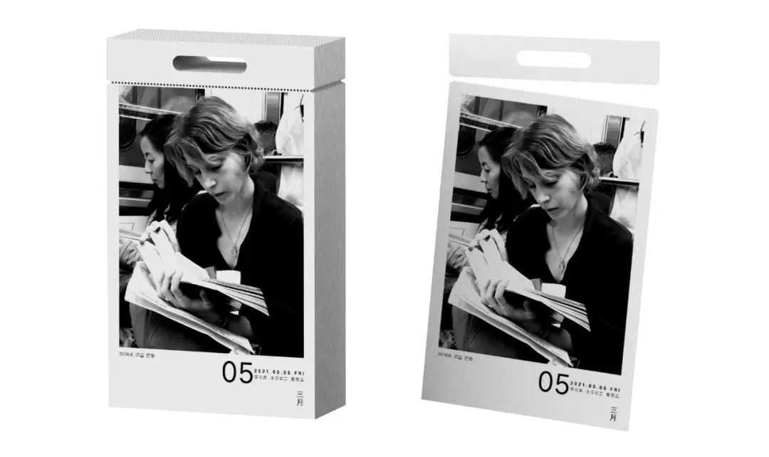 倒计时版则大玩未来感,在白色倒计时版上印银色“撕裂痕”,每一页的裂痕都在变化,痕迹逐渐变窄,银色的部分逐渐侵蚀,如同时间的潮涨潮落。