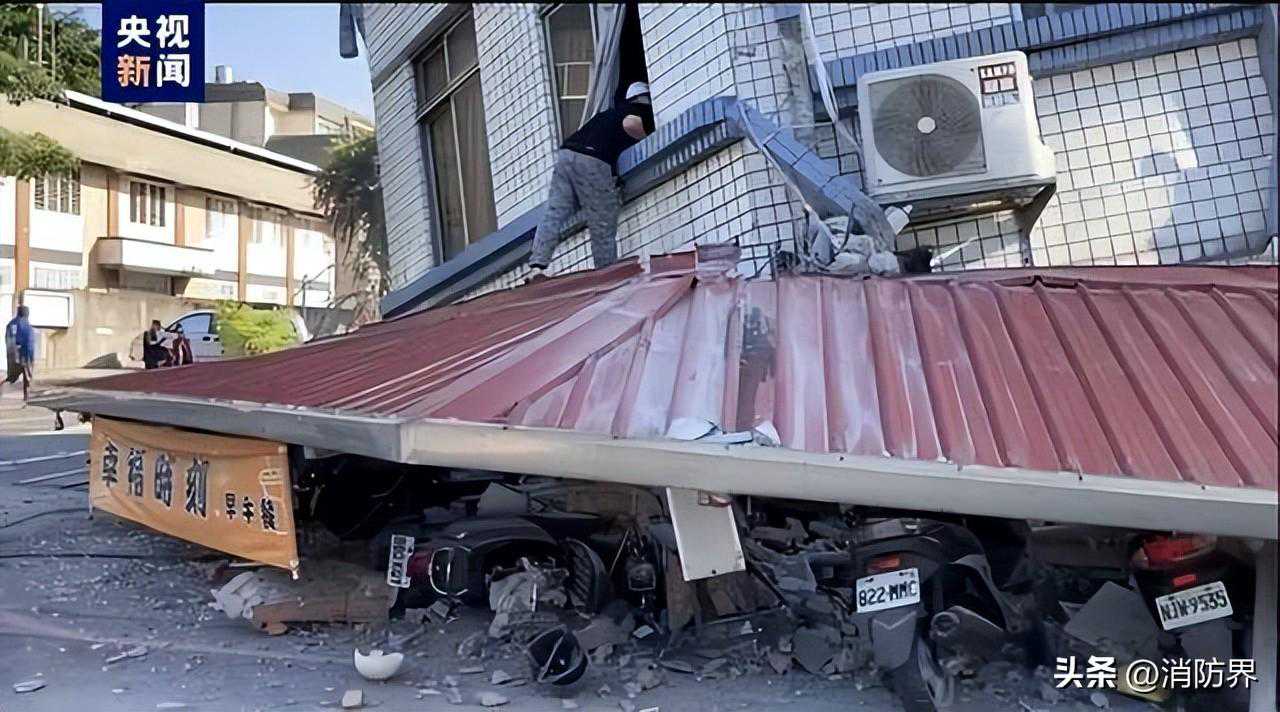 据台媒报道,花莲市区一栋大楼在地震中倾斜。花莲有多处民宅倒塌,其中一处早餐店完全倒塌。有被困民众从窗户逃生。