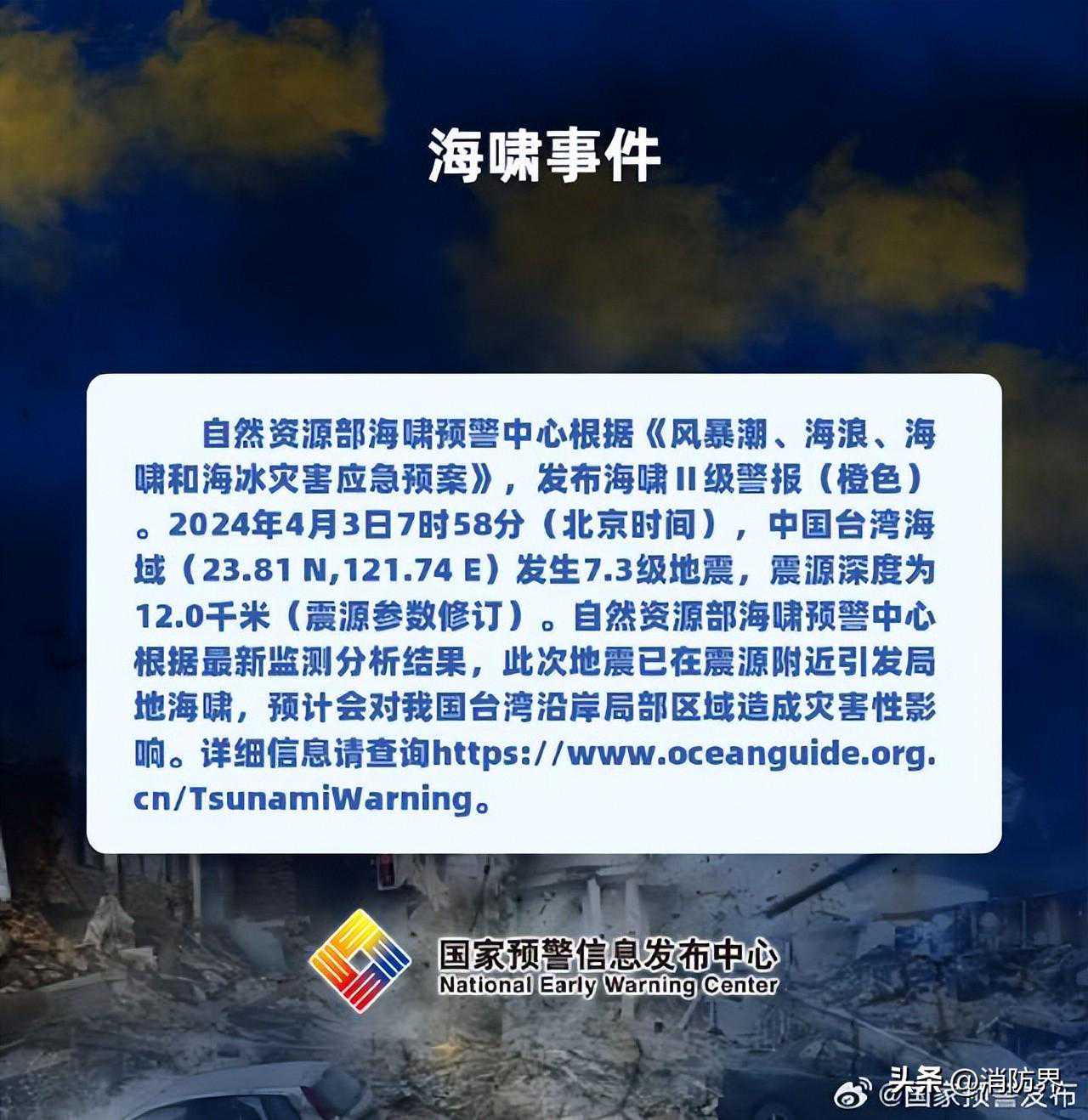 自然资源部海啸预警中心发布海啸Ⅰ级警报(红色)。
