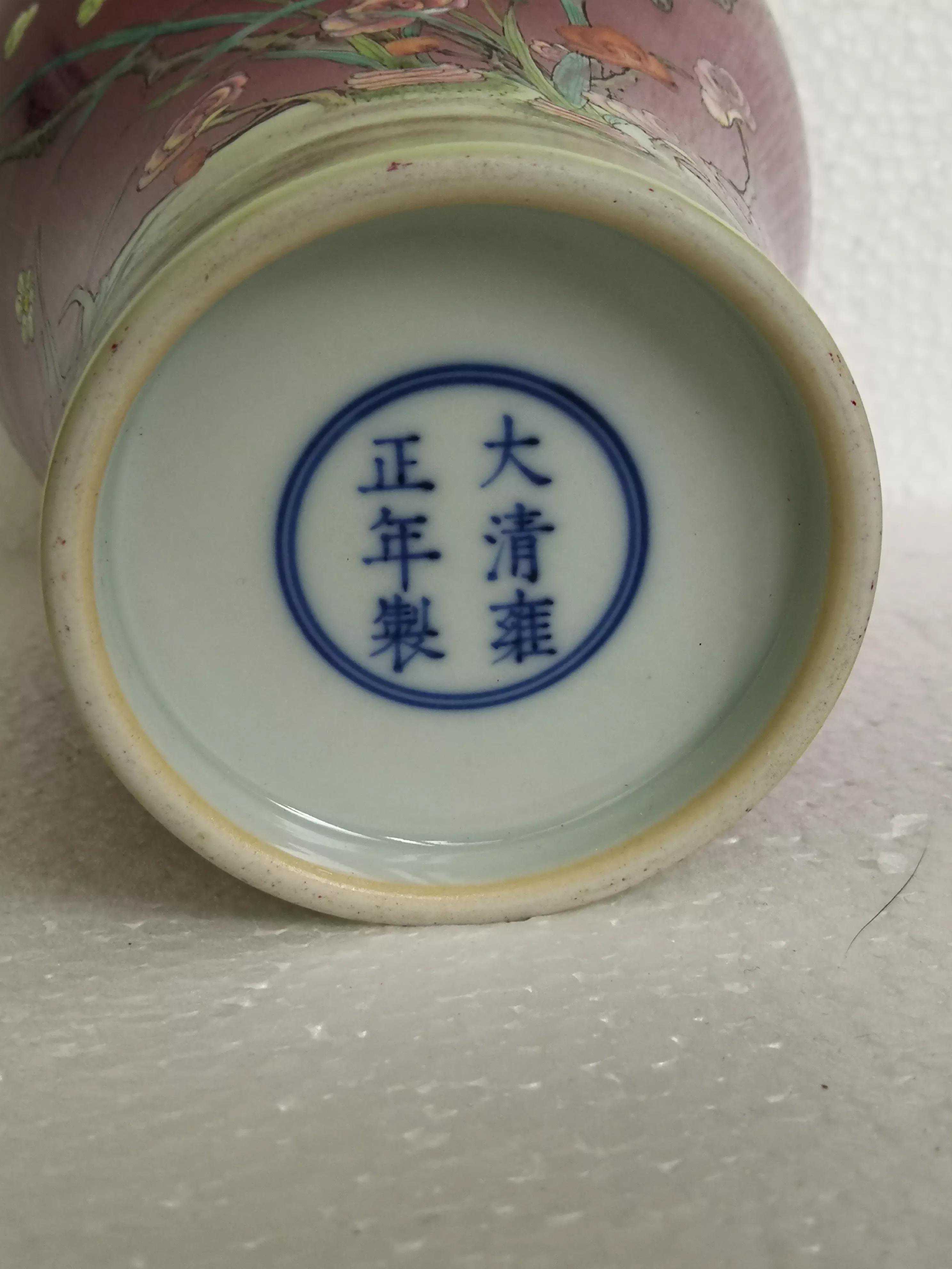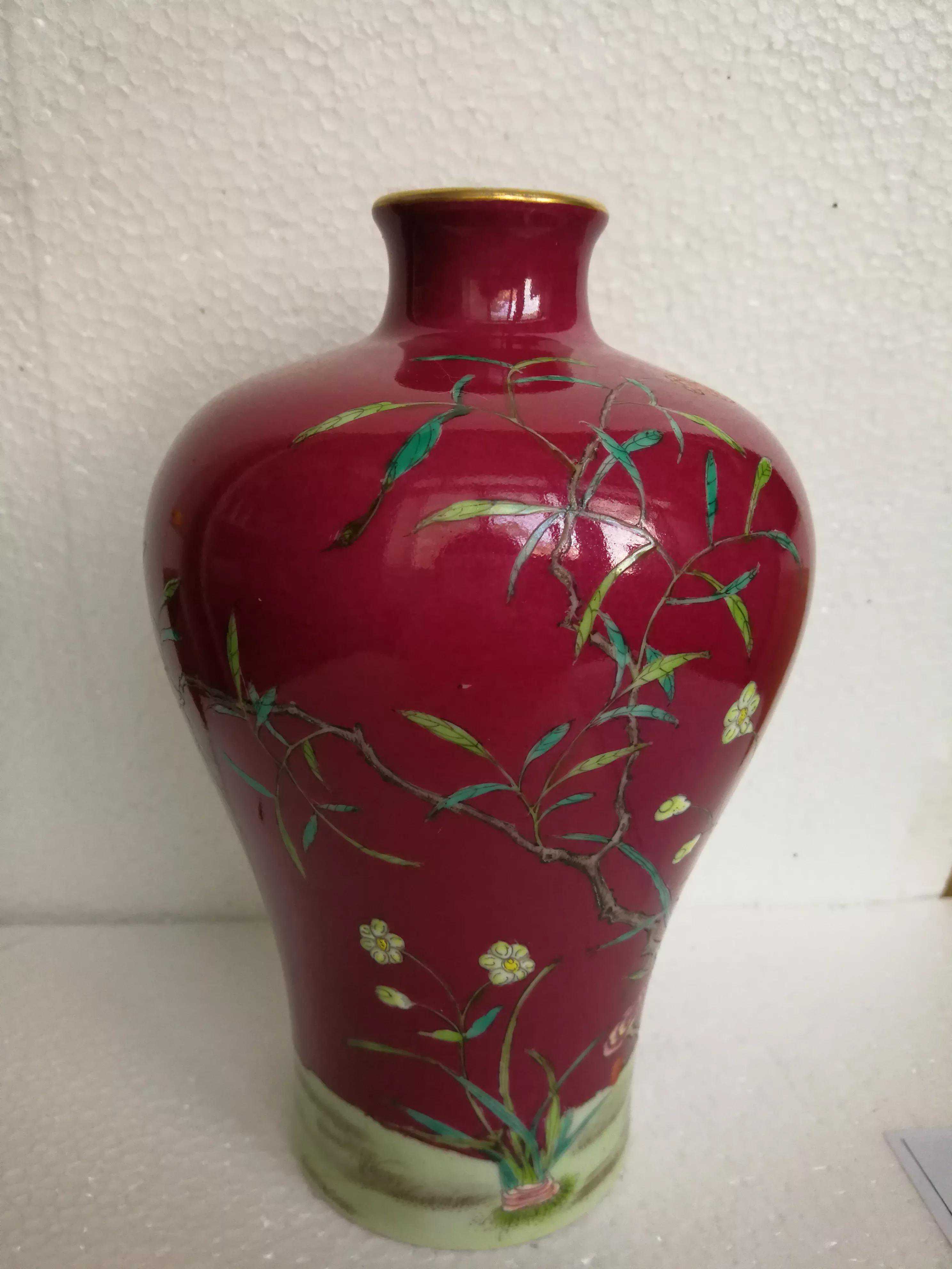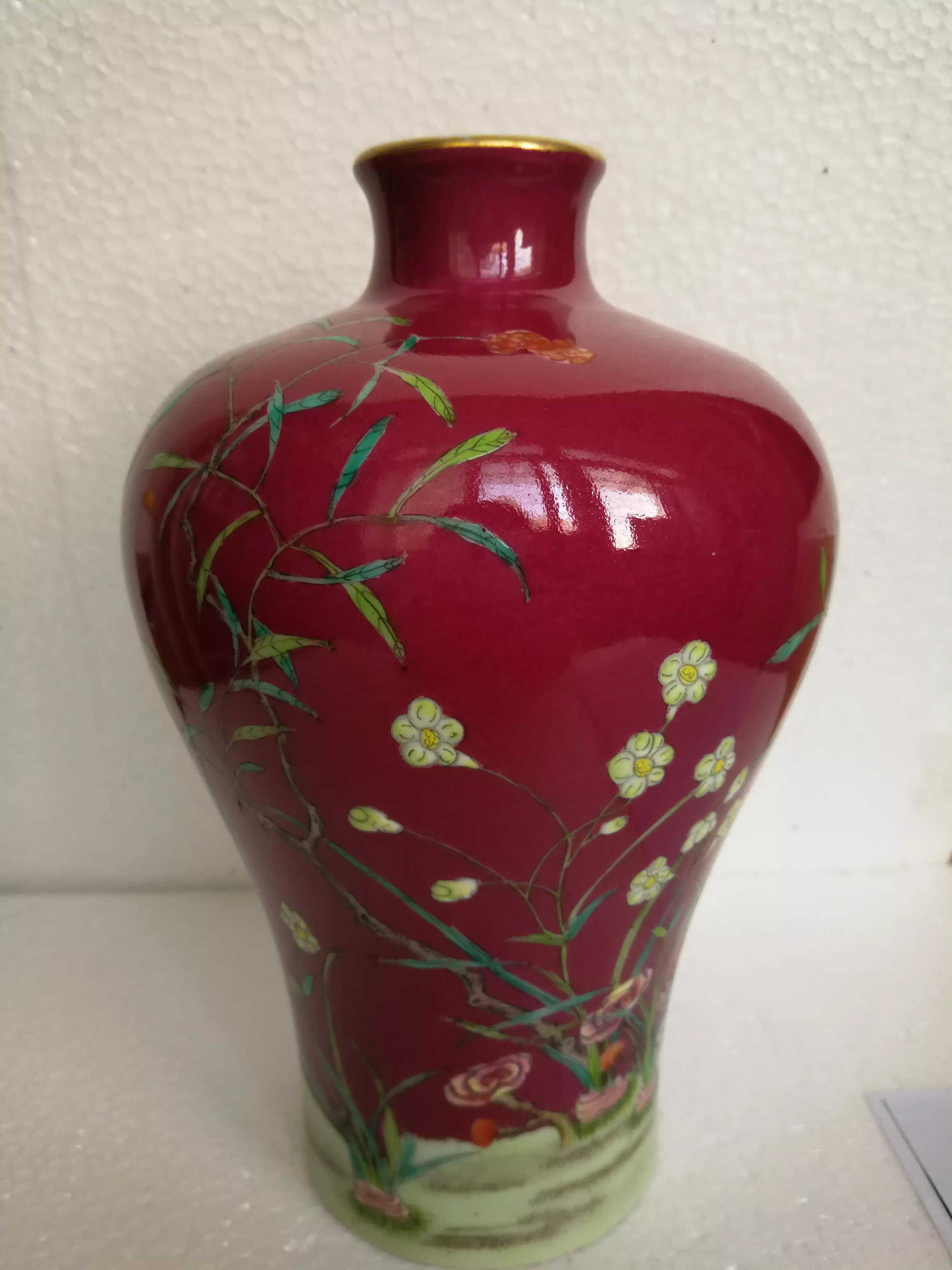 文章引进据点,说雍正皇帝如何如何,烧了这么一个梅瓶,如果是雍正皇帝让御窑厂烧出来的梅瓶,就不会不写款,这一点毋庸置疑。本人也恰好收藏了一对雍正祭红釉加彩的梅瓶,是雍正官窑,不过画片不是梅花而是兰花罢了,我发到网上,让藏友看看,真正的官窑祭红釉加彩是什么样子的。