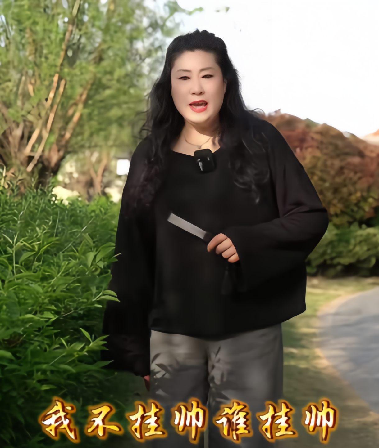 只见干娘身穿黑色上衣搭配阔腿牛仔裤,披散着头发,这打扮跟之前的造型比起来着实是洋气了太多。