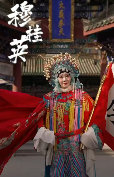 干娘休息后,肉眼可见的状态极佳,连穆桂英都扮演上了。