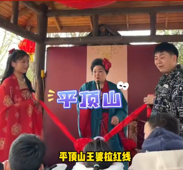 广西荣县的王婆紧随其后,平顶山也有了王婆拉红线,中间还掺杂着猪八戒的表演。