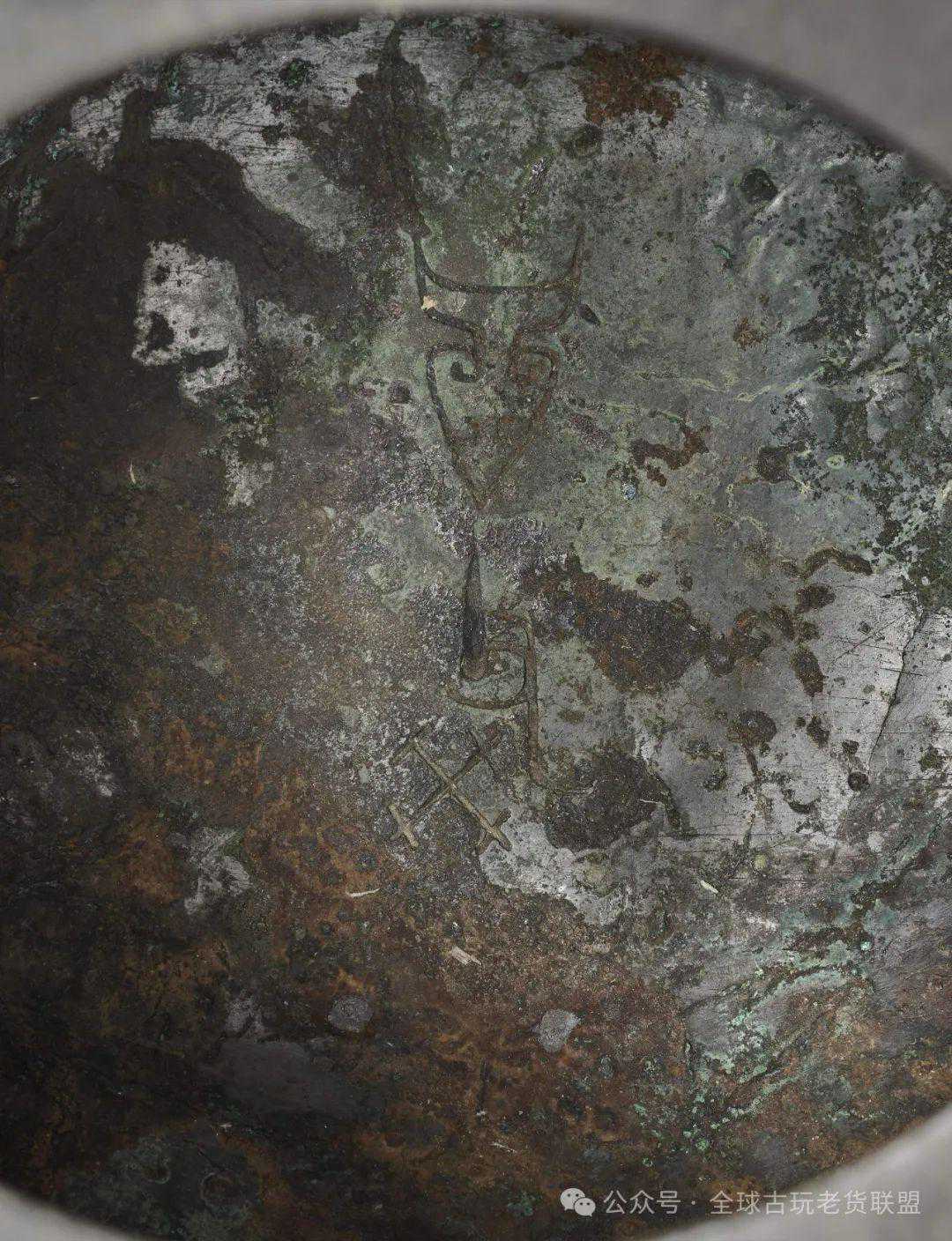 字,为族氏金文。宝鸡凤翔县先周墓曾出土有鼎族分裆鬲鼎,斗鸡台也曾出土一大一小两鼎卣,可见鼎族的居住范围位于宝鸡一带。本件器形周正敦厚,铸造工艺精湛,尺寸虽不大然体量厚重,为商代晚期同类之翘楚。