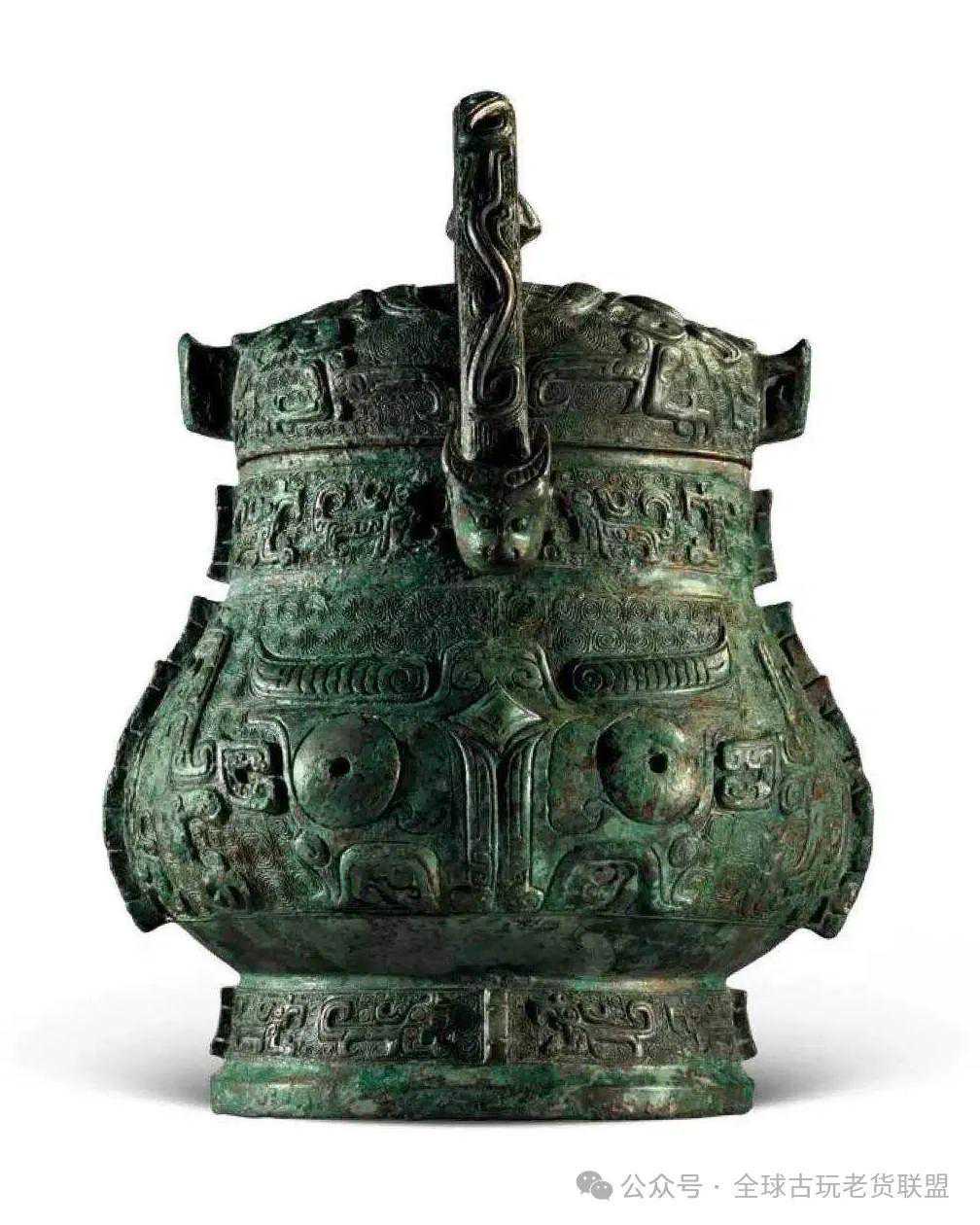 传统之卣有圆体壶形、扁圆体、筒形、方形、鸟兽形五类,本件属扁圆体式,商代晚期开始出现,流行于西周早期。扁圆体卣的提梁又可细分两种,一种安置在扁圆长轴的两端,一种安置在扁圆短轴的两端,本件形制属后者,器形、纹饰、铭文皆属典型的商末周初商人贵族用器。