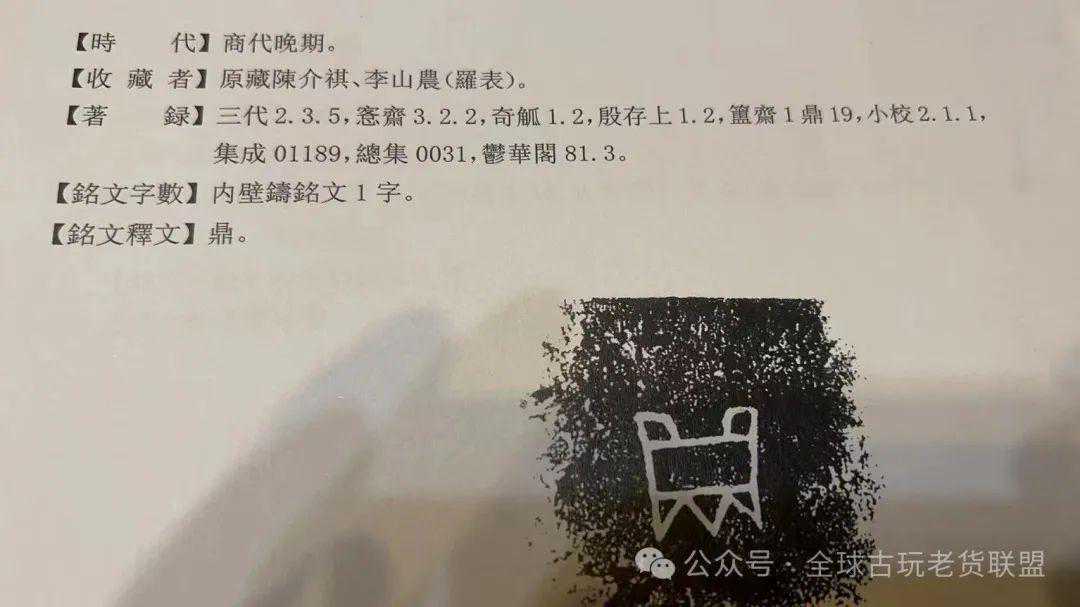 出版:三代2.3.5,愙斋3.2.2,奇觚1.2,殷存上1.2,簠斋1鼎19,小校2.1.1,集成01189,总集0031,郁华阁81.3