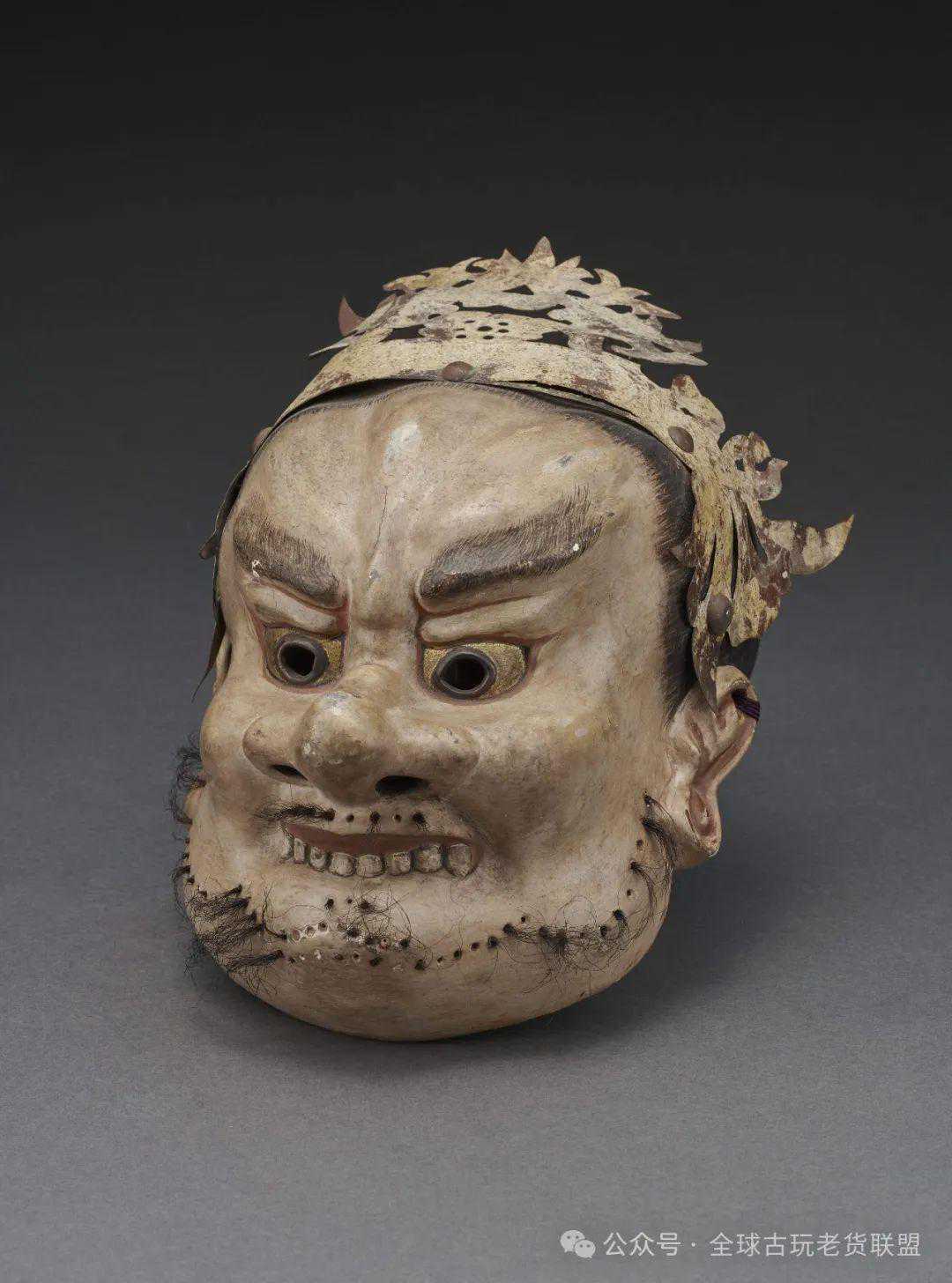“傩”是兴起于先秦时代的驱邪逐疫、禳凶纳吉的仪式,主持者称为“方相氏”,头戴面具,手持竹竿或兵器作驱除击打瘟疫鬼祟之状。至唐代,除夕之日更要进行“大傩”的祭礼。傩仪面具形式多样,最初多鬼魅、动物,佛教的兴盛将天王力士的形象引入古老的傩祭之中。日本正仓院保留有唐代力士傩仪面具,与本件的做工、漆色相类,可为参照。