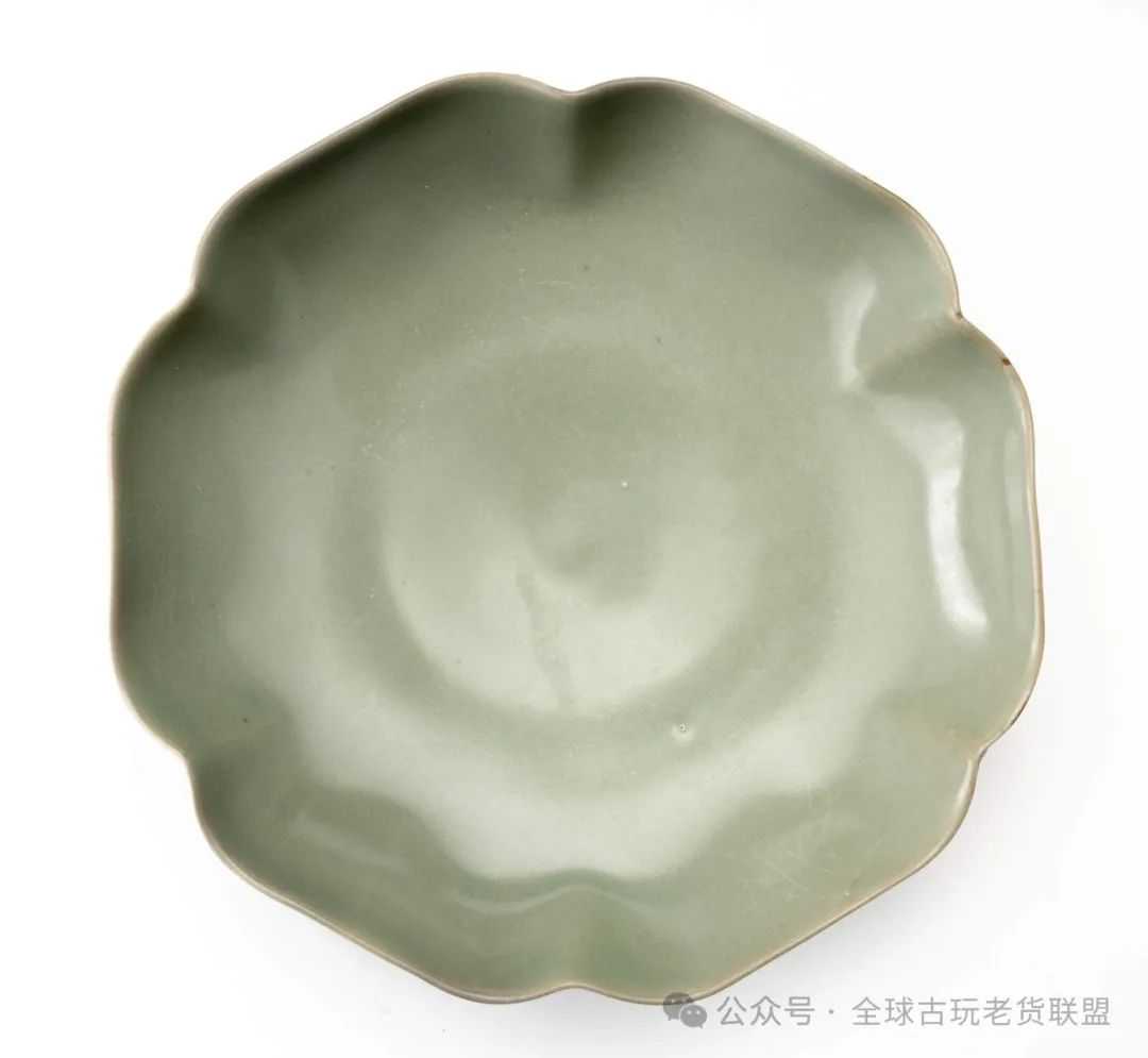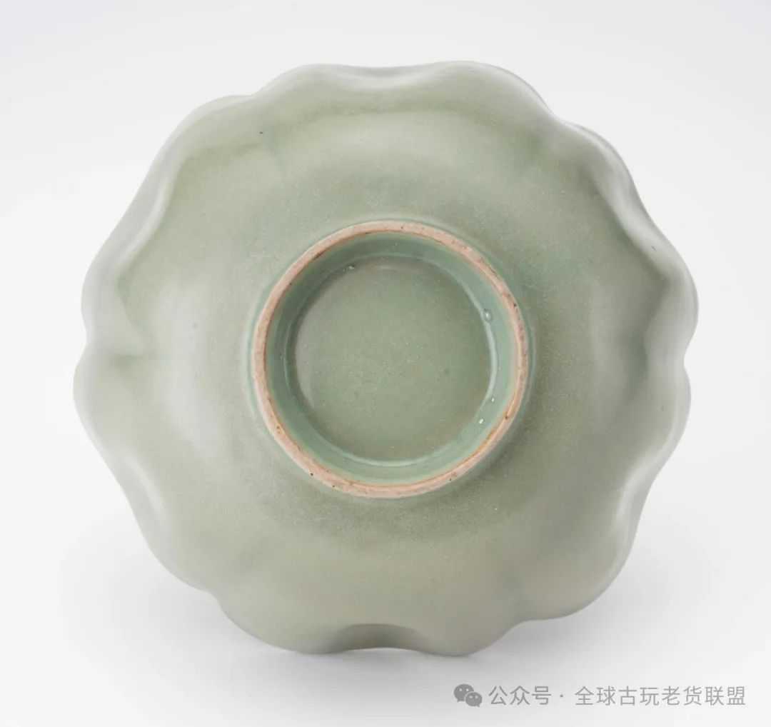 此件平面呈六瓣花式,侈口斜壁浅腹,底承圈足。通体施青釉,圈足修胎规整。临汝窑位于河南省临汝县,已发现严和店、轧花沟、下任村、东沟、陈沟、岗窑、石板河、桃木沟、陈家庄、蜈蚣山等遗址,主要生产民窑青瓷,创烧于晚唐至北宋早期,北宋中期发展成熟,北宋晚期达到鼎盛,金元时期逐渐衰落。北宋末年,部分临汝窑窑址专为皇家烧制瓷器,产品即大名鼎鼎的汝窑器。