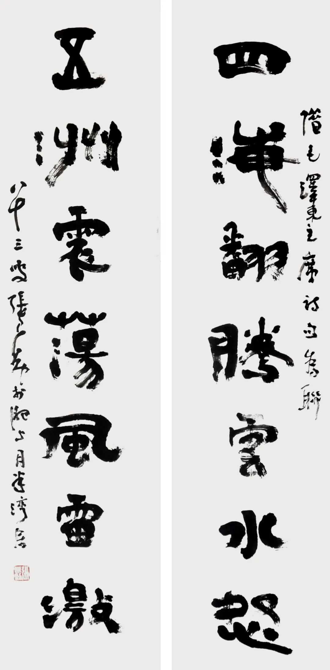 大篆对联《风月对樽酒林泉集众宾》134×34cm×22023年