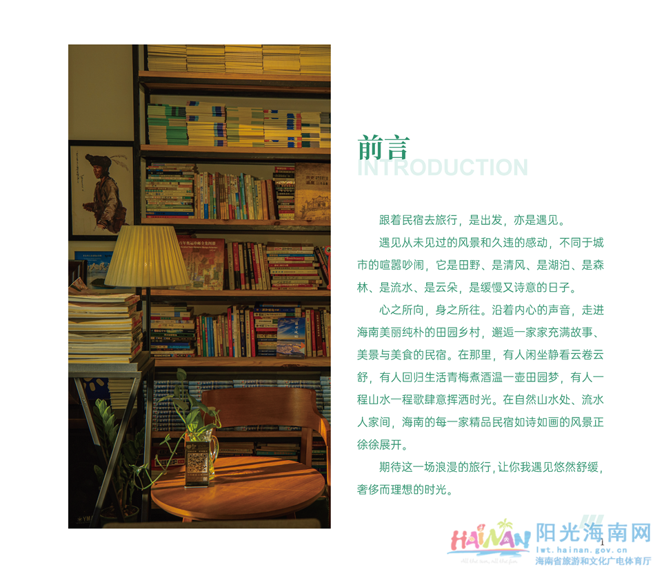 心之所向,身之所往。沿着内心的声音,走进海南美丽纯朴的田园乡村,邂逅一家家充满故事、美景与美食的民宿。在那里,有人闲坐静看云卷云舒,有人回归生活青梅煮酒温一壶田园梦,有人一程山水一程歌肆意挥洒时光。在自然山水处、流水人家间,海南的每一家精品民宿如诗如画的风景正徐徐展开。