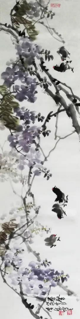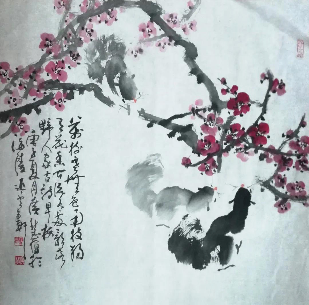 我从广慧老师朋友圈里的相册转发了几幅画,元亮老师发的更多,可见孙老师厚爱有加。孙老师从笔墨到精神修养方面细评到位,并无美言,是实话实说,我完全赞同。并想说几句个人见解:一是笔墨豁达通透,潇洒明快,干脆利落,稳重而灵动。二是高度概括,夸张与变形,这点不易做到,因为夸张变形是有特定审美要求的,很多人想变却没有变好,它涉及到艺术高境界的体现。大写意与意象有关系,意象与夸张变形紧密相连,要如此追求没有审美意识不行。广慧老师心中有美。三是富有独特个人思维。他游思遐想,敢于创造,他画竹画梅与众不同,特別是画松鼠,更是独具匠心。不知有多少人画松鼠,都未感动我,唯独贾老师那一笔定乾坤的精灵,使我记住。他高度概括不拖泥带水的用笔,那人性化的夸张处理和专致神态,将松鼠小巧玲珑,活泼可爱,形态优维,动态敏捷塑造的完美无缺。而很多画家却被自然生态牵着鼻子走,不教跃雷池一步。贾老师慧眼识美而造美,非常出色。四是具有当代的观念意识。他的思维是当代的,是立足于传统基础上的,不守旧,具有与时俱进的时代观念,这点难能可贵。很多人难以做到,死抱传统不放,继承与发扬成了空话。难能可贵是当代意识的跟进,广慧老师努力践行,值得很多人深思与学习。