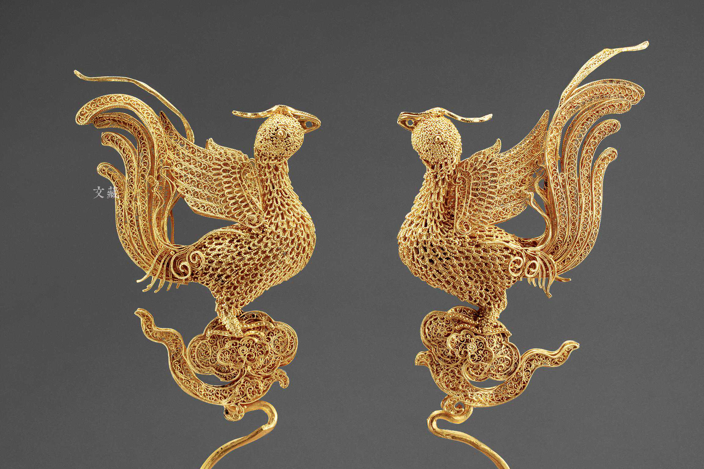 凤簪是凤冠上的插饰,非王室贵族不可用,因此一般出土都是功臣墓或王室墓中,如南京板仓村徐俌夫人朱氏墓出土的一对金累丝凤簪,累丝工艺的运用犹如运笔,姿态翩然,雍容华贵,是典型贵族墓出土凤簪之形制。